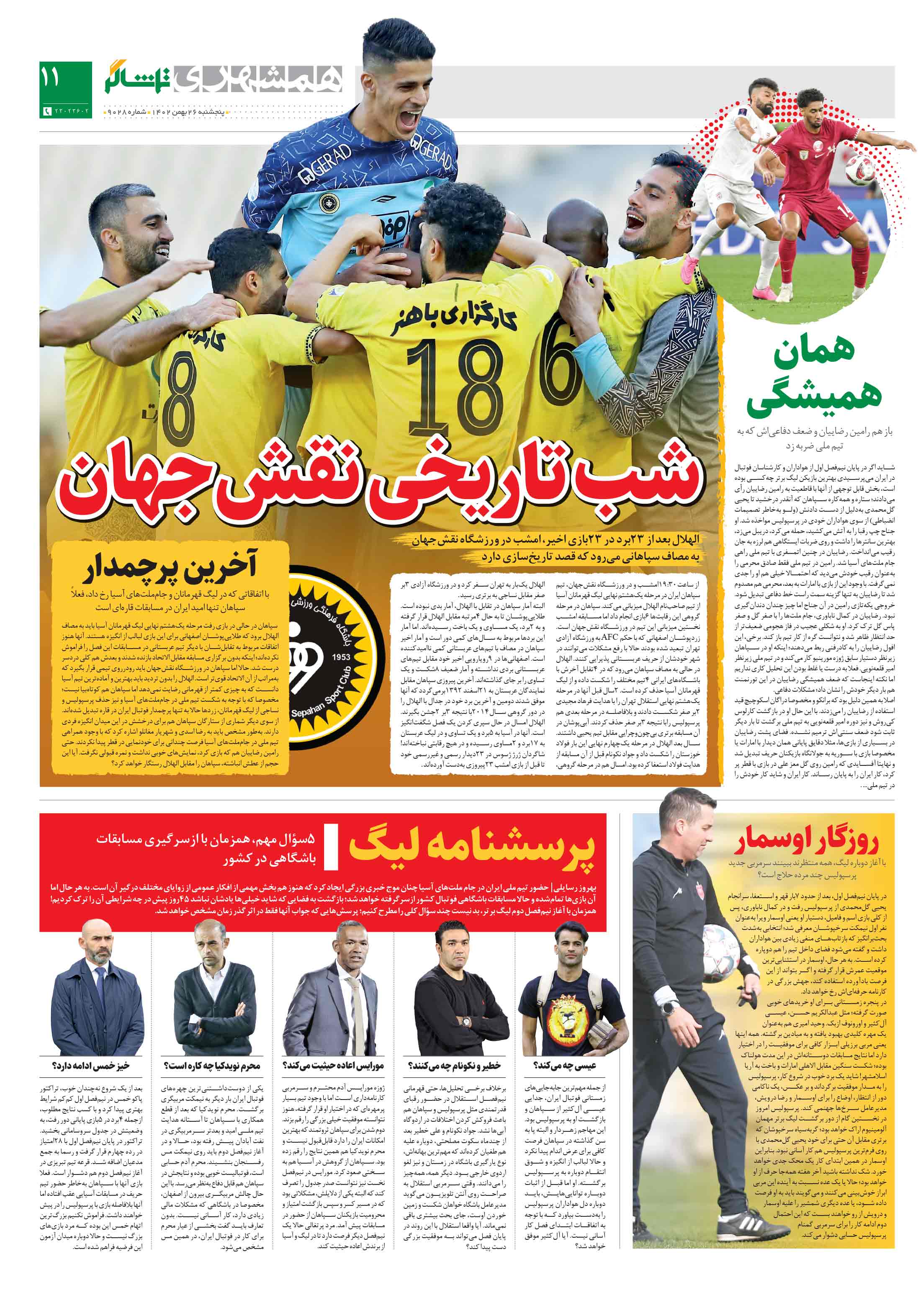در پایان نیمفصل اول، بعد از حدود 7بار قهر و استعفا، سرانجام یحیی گلمحمدی از پرسپولیس رفت و در کمال ناباوری، پس از کلی بازی اسم و فامیل، دستیار او یعنی اوسمار ویرا بهعنوان نفر اول نیمکت سرخپوشان معرفی شد.