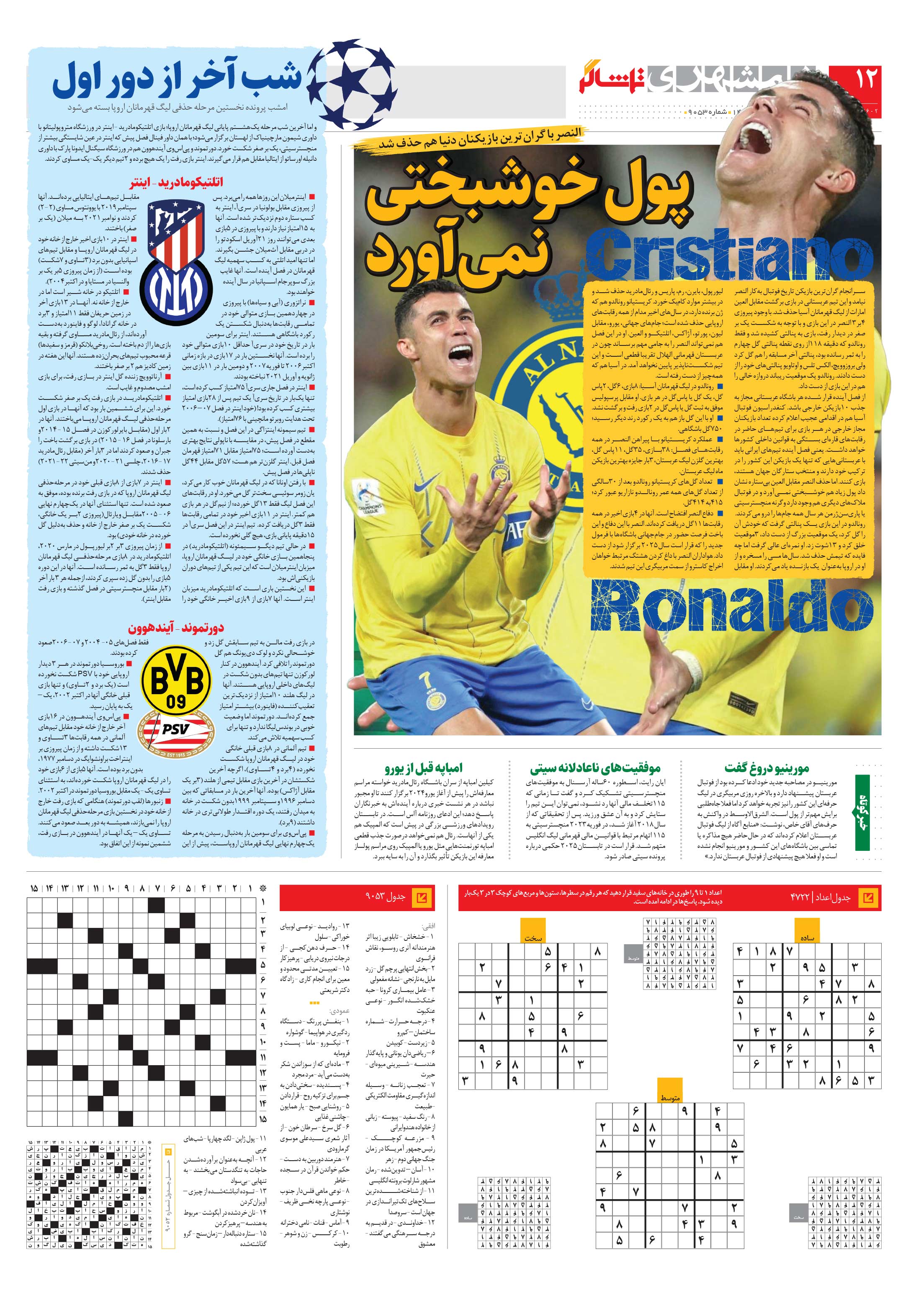 و اما آخرین شب مرحله یکهشتم پایانی لیگ قهرمانان اروپا؛ بازی اتلتیکومادرید - اینتر در ورزشگاه متروپولیتانو با داوری شیمون مارچینیاک از لهستان برگزار میشود.