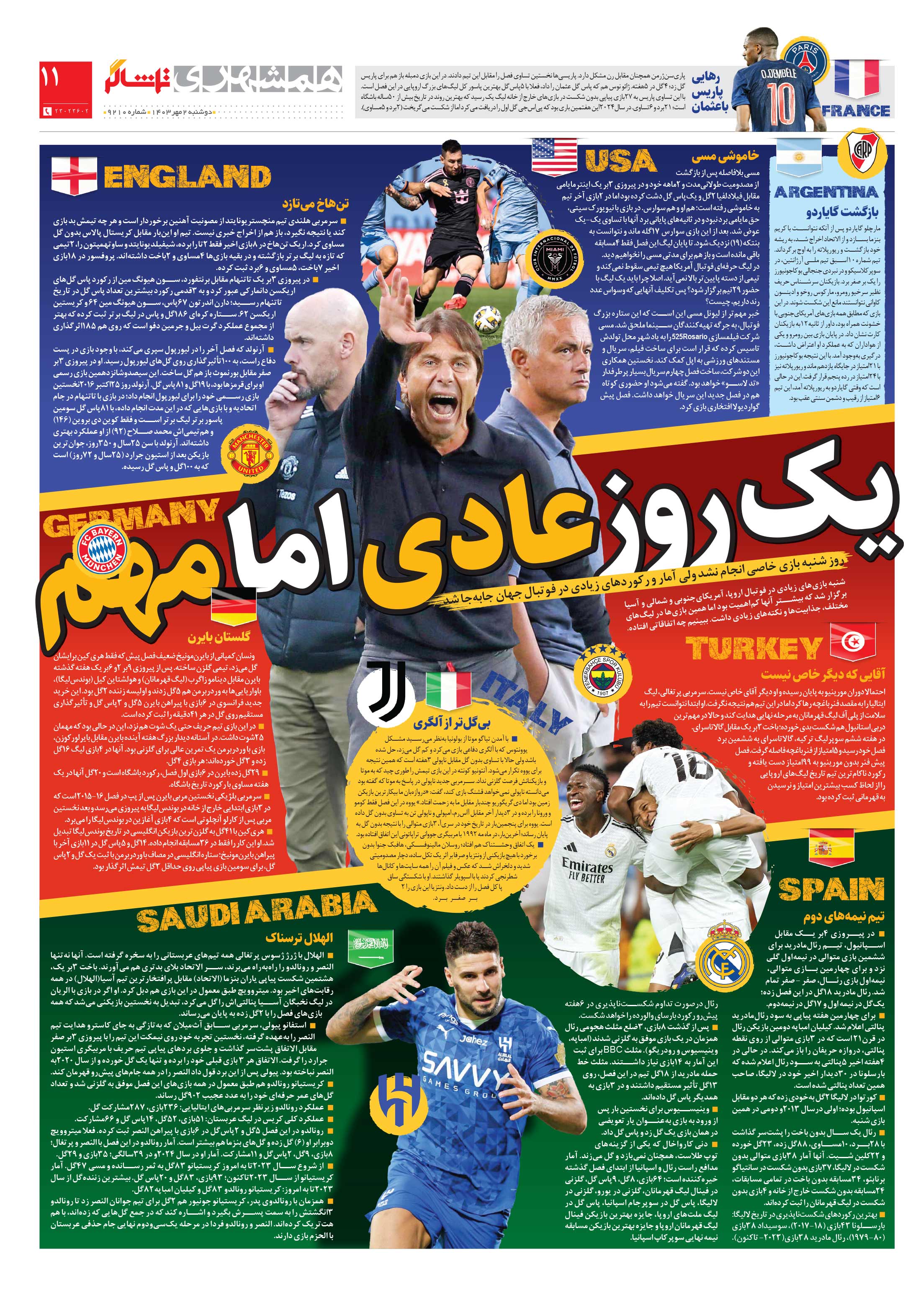 روز شنبه بازی خاصی انجام نشد ولی آمار و رکوردهای زیادی در فوتبال جهان جابهجا شد