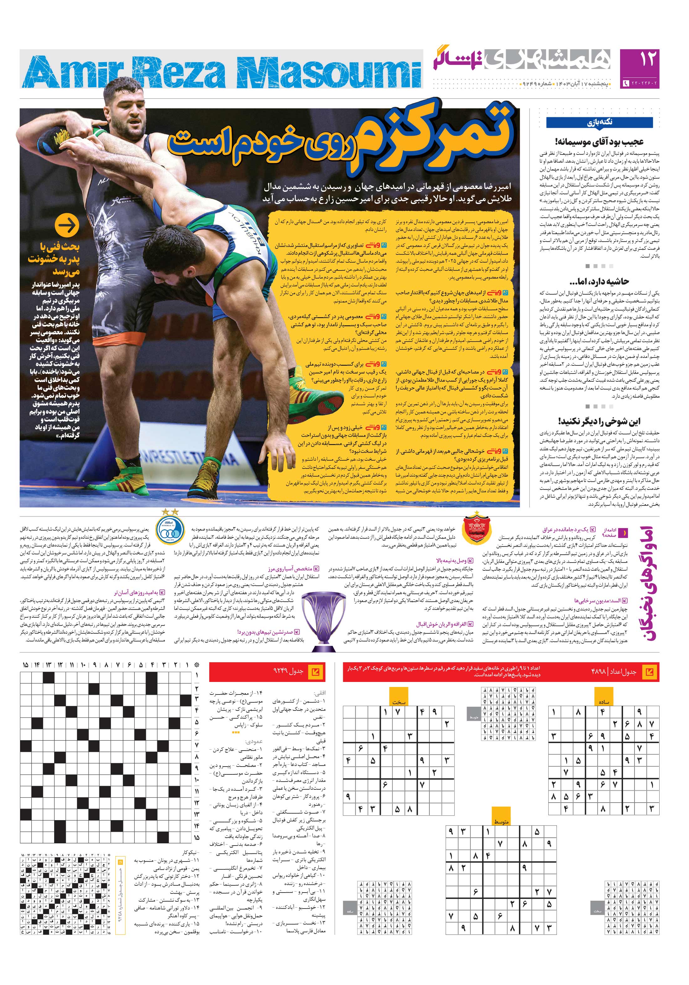 امیررضا معصومی؛ پسر فردین معصومی دارنده مدال نقره و برنز جهان. او با قهرمانی در رقابتهای امیدهای جهان، تعداد مدالهای طلایش را به عدد 6رساند و دل هواداران کشتی ایران را به حضور یک پدیده جوان در تیم ملی بزرگسالان قرص کرد.