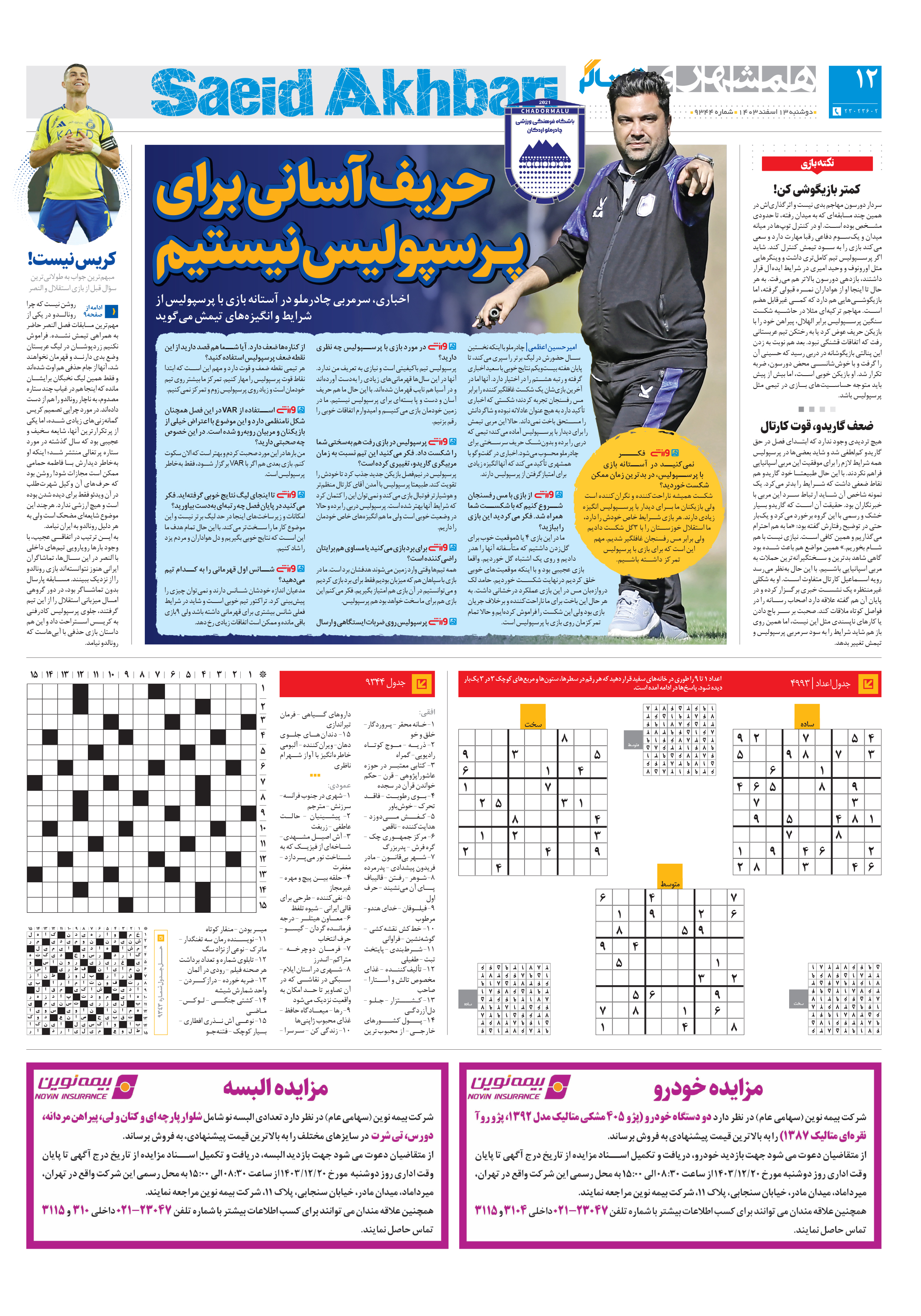 اخباری، سرمربی چادرملو در آستانه بازی با پرسپولیس از شرایط و انگیزههای تیمش میگوید