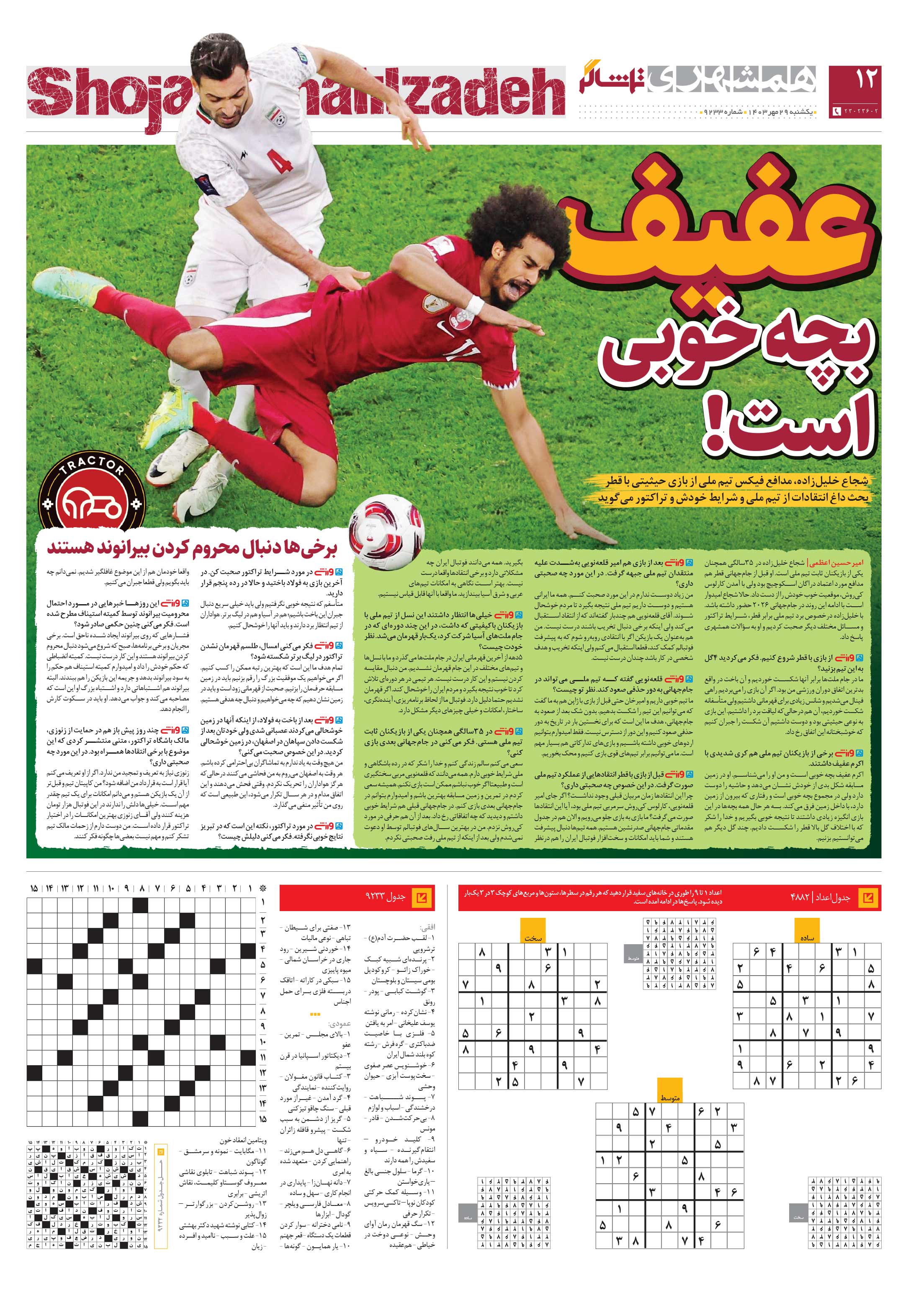 شجاع خليلزاده مدافع فيکس تيم ملي از بازي حيثيتي با قطر بحث داغ انتقادات از تيم ملي و شرايط خودش و تراکتور ميگويد