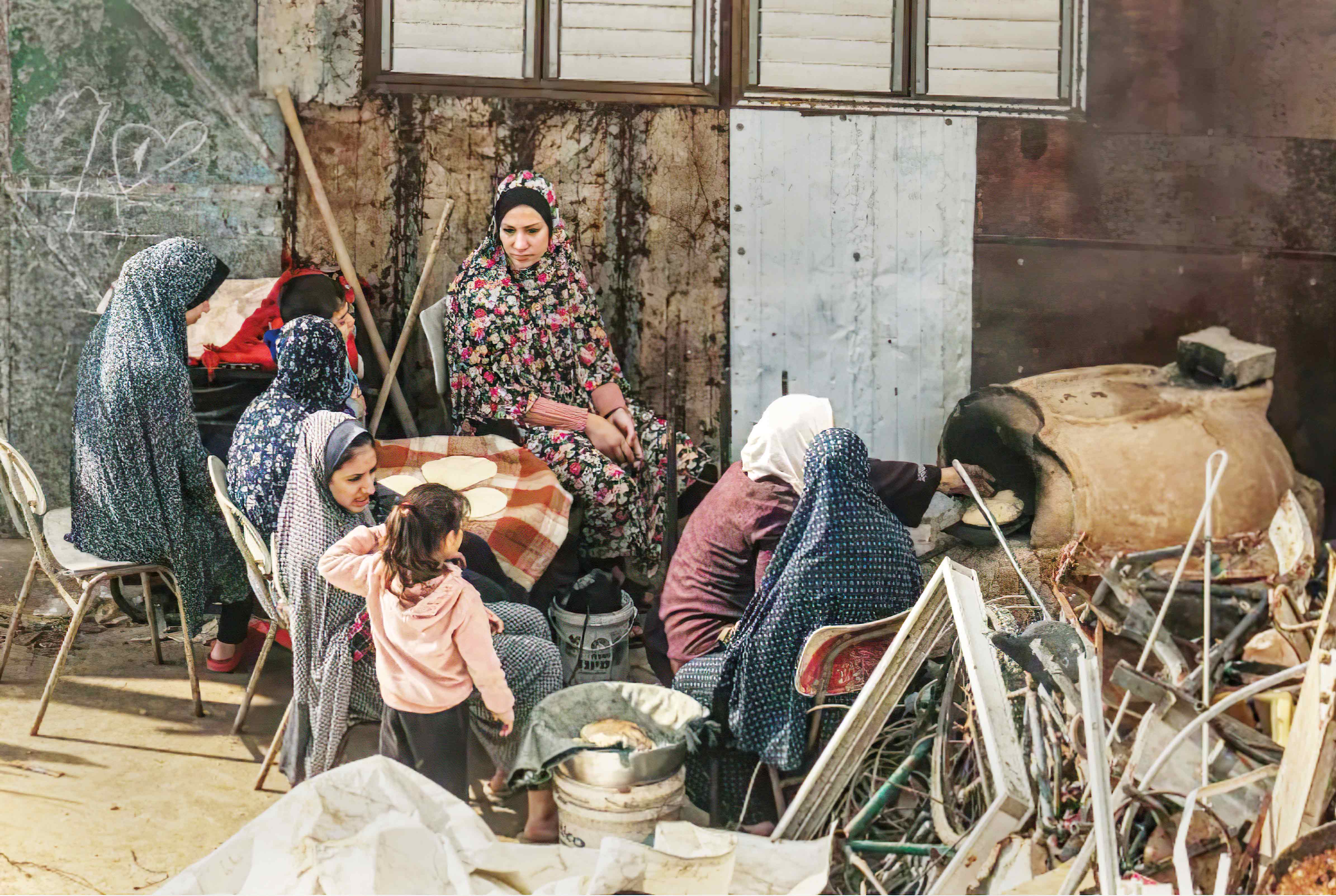قد یکون من المستحیل لو افترضنا أنفسنا بمکان النساء الفلسطینیات، إذ أن ظروف الحرب القاسیة قد جعلت الوضع لایطاق بالنسبة لهن. فمما یزید الطین بلة هو ان النازحات یعشن مشاکل العائلة و یتحملن في نفس الوقت صعوبة العیش کربة بیت و أم أولاد.