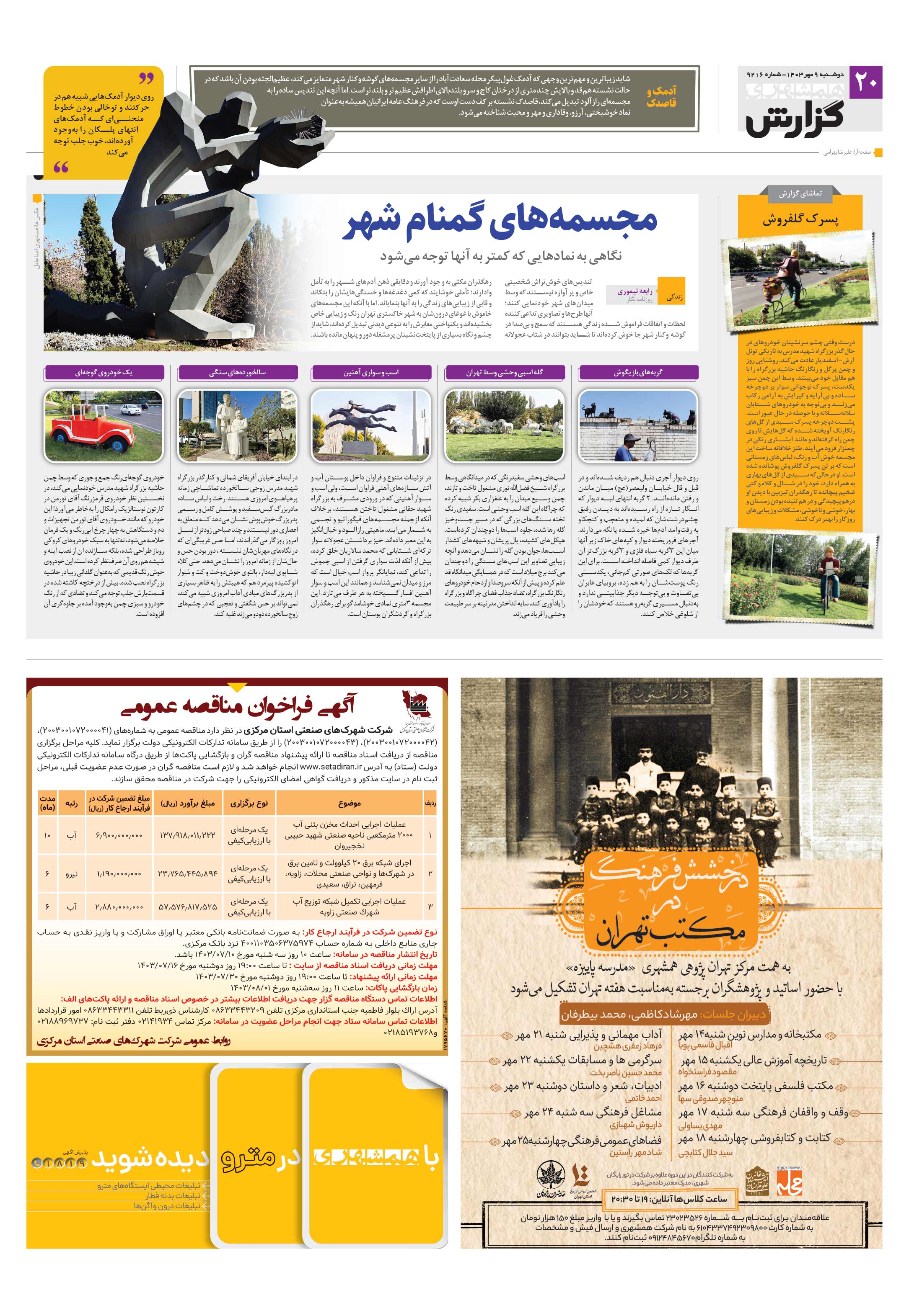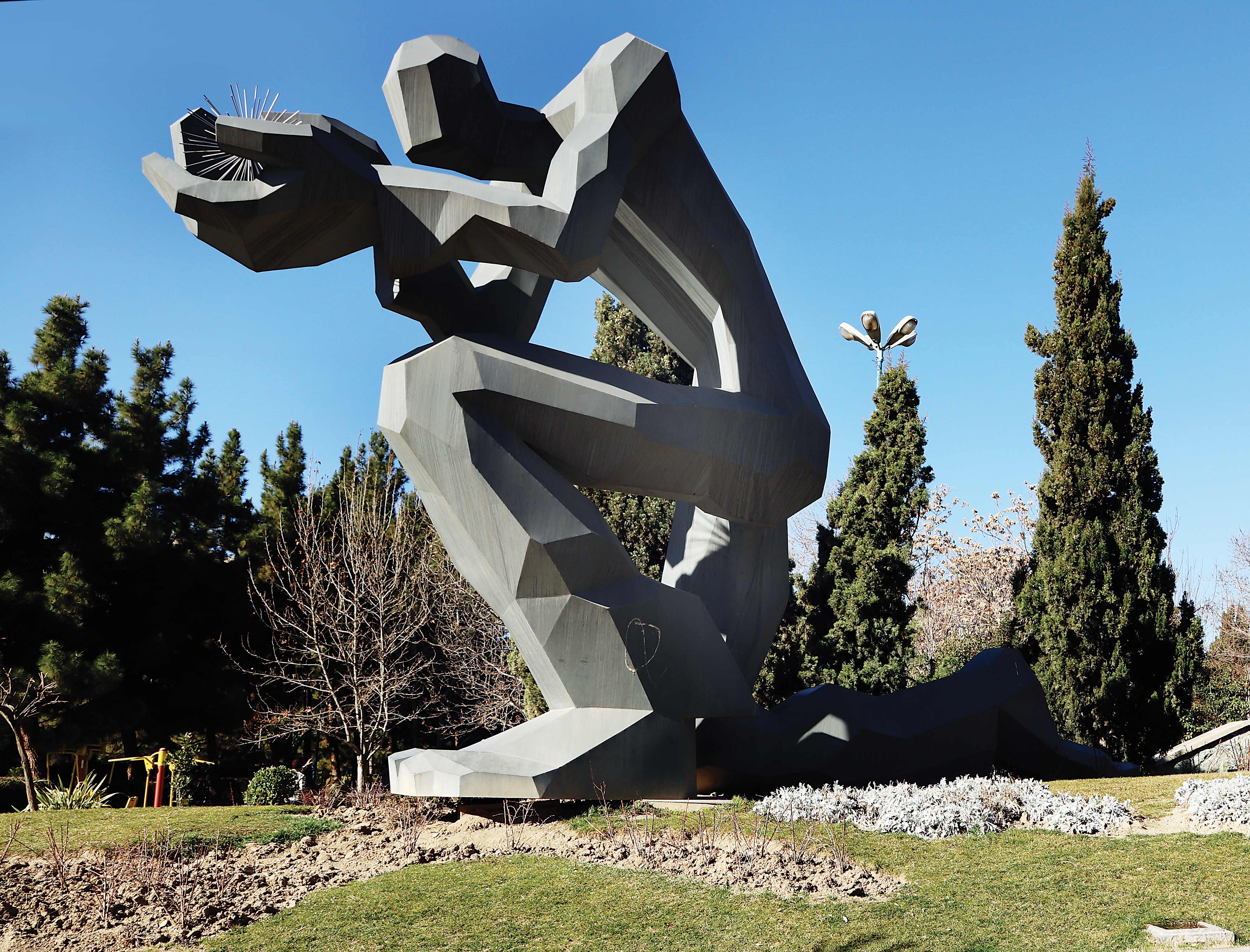 شاید زیباترین و مهمترین وجهی که آدمک غولپیکر محله سعادتآباد را از سایر مجسمههای گوشه وکنار شهر متمایز میکند، عظیمالجثه بودن آن باشد که در حالت نشسته هم قد و بالایش چند متری از درختان کاج و سرو بلندبالای اطرافش عظیمتر و بلندتر است.
