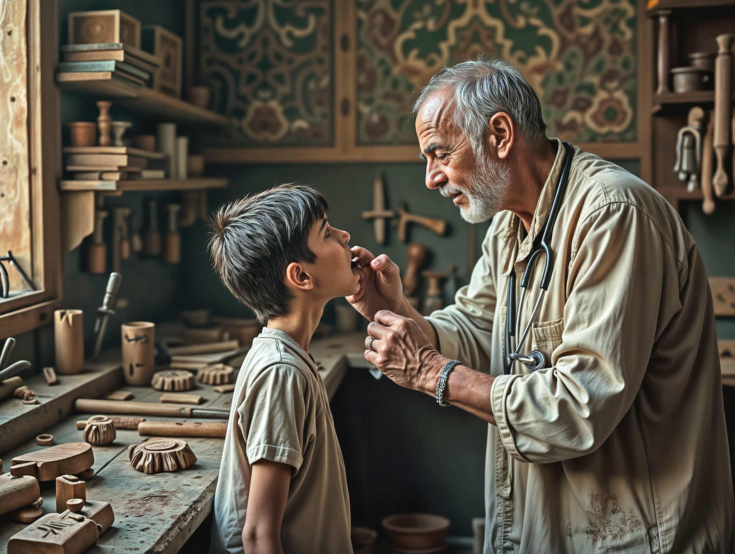 اول با روغن نباتی دو طرف گلویش را خوب ماساژ میدهد: دورانی، بالا به پایین... حالا وقت فوت کذایی است و بیمار باید دهانش را به اندازه یک خمیازه کشدار باز نگه دارد تا آقاهاشم همه نفس سنگینش را یکجا و پرقوت در یک پره بینی او رها کند.