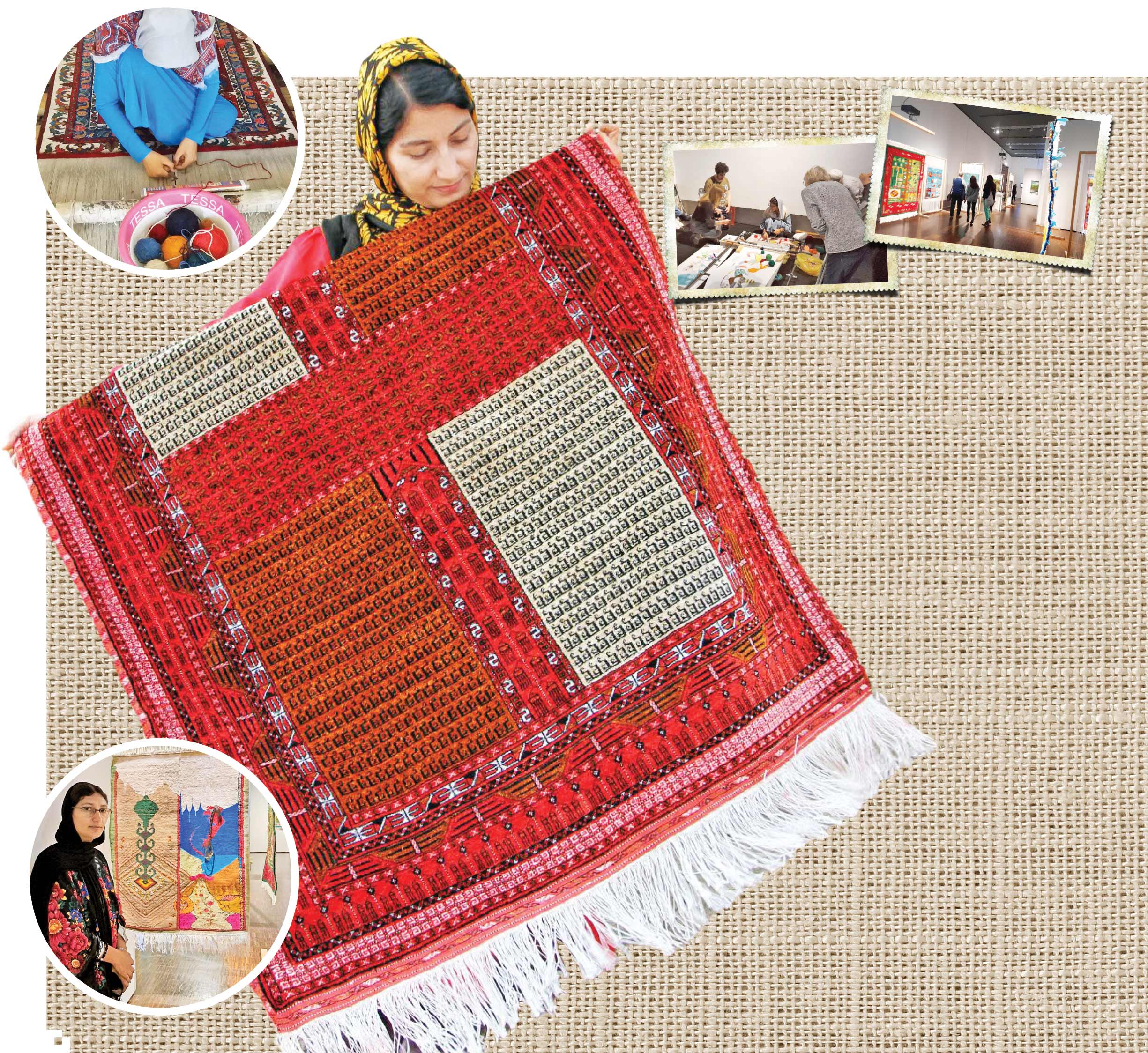 صاحبجمال رحیمی بیشترین تعداد آثار را در نمایشگاه موزه کلن داشته، اما آنابیک کوهی، رابعه رحیمی، زلیخا داوری، آسیه داوری و معصومه ذوالفقاری هم در این گفتوشنود هنری شرکت کردهاند و در قالب قالی و قالیچه و تابلوفرشهایی نفیس، گوشهای از فرهنگ و سبک زندگی زنان قالیباف را به تصویر کشیدهاند.