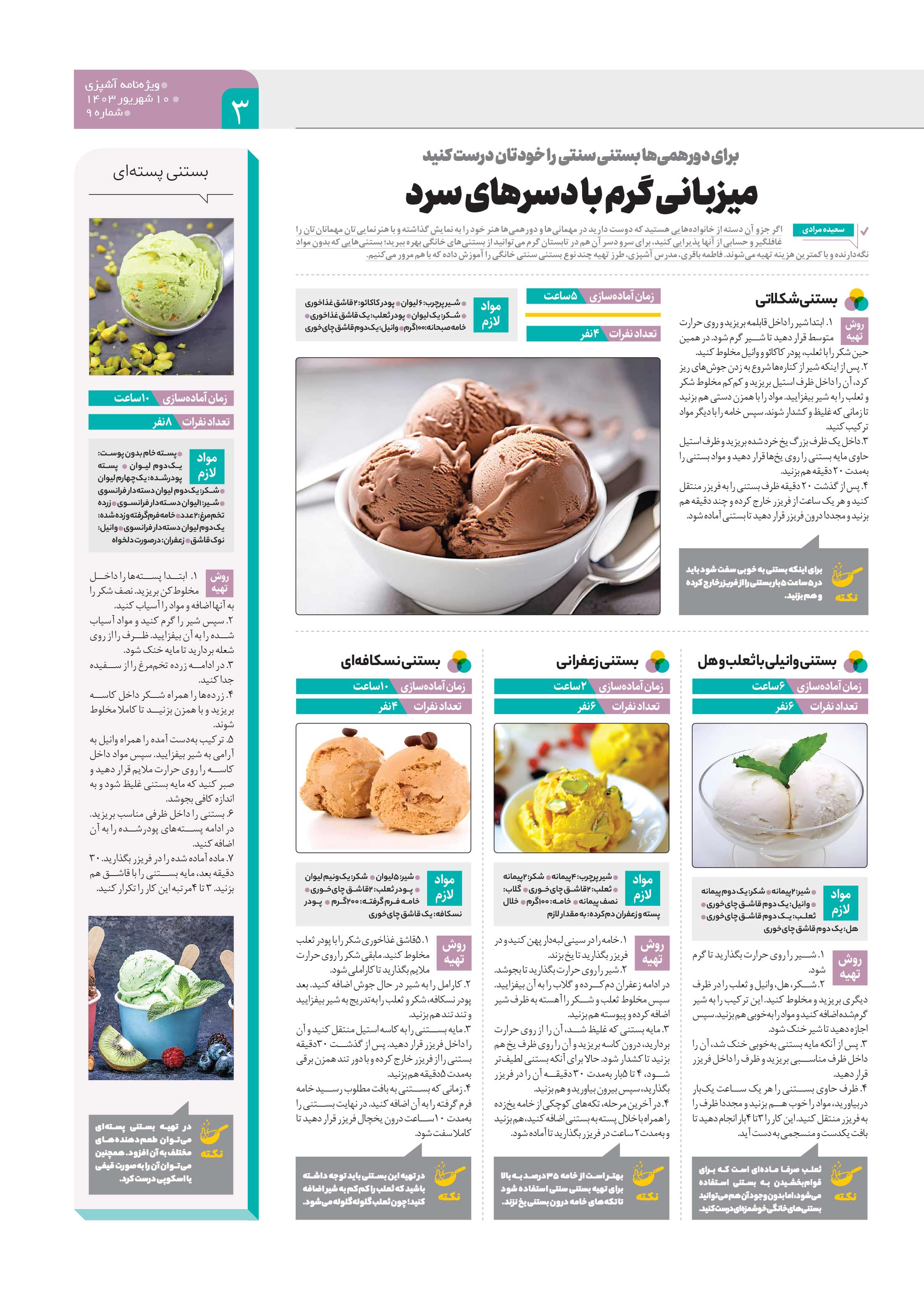 میزبانی گرم با دسرهای سرد