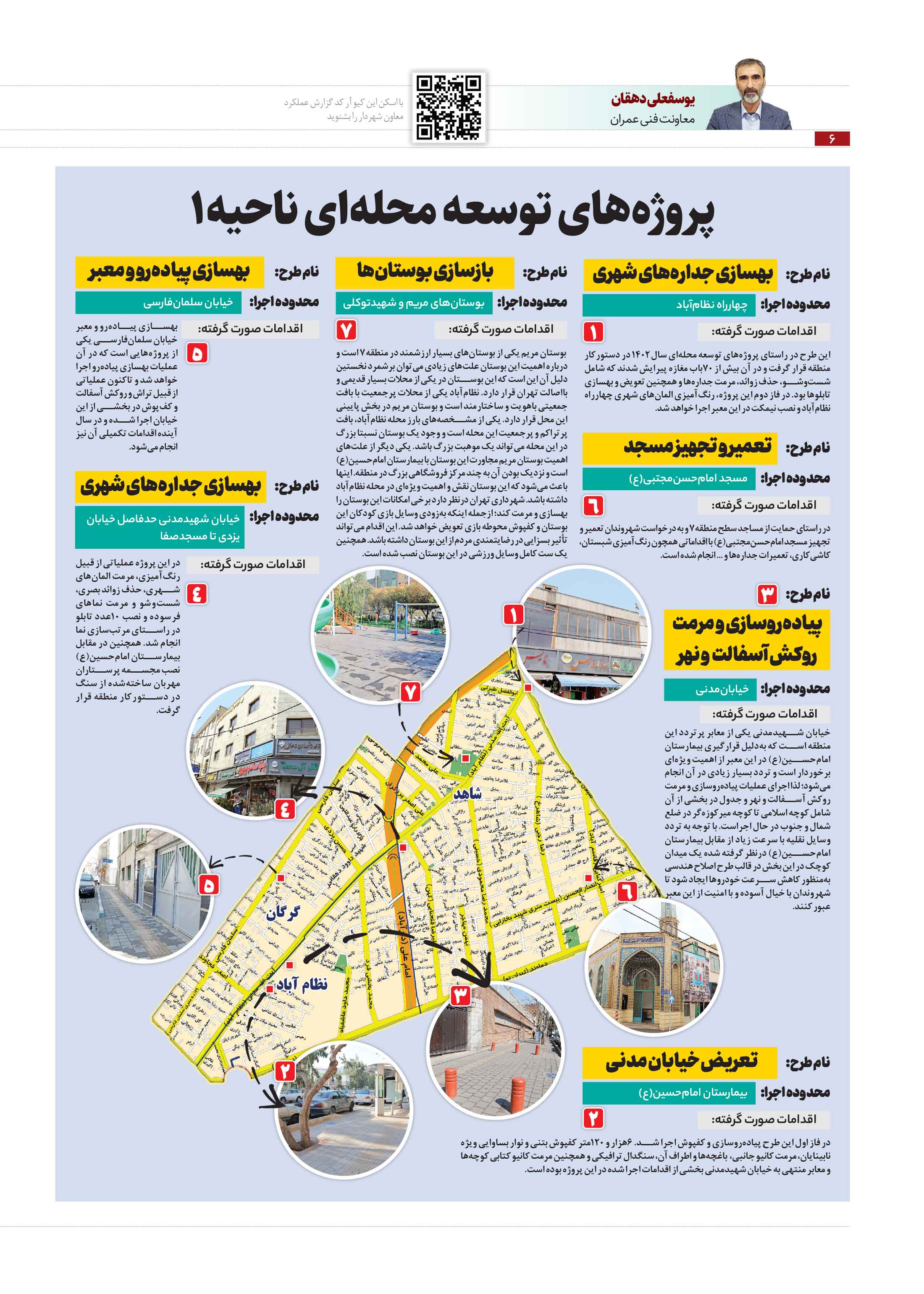 این طرح در راستای پروژههای توسعه محلهای سال1402 در دستورکار منطقه قرار گرفت و در آن بیش از 70باب مغازه پیرایش شدند که شامل شستوشو، حذف زوائد، مرمت جدارهها و همچنین تعویض و بهسازی تابلوها بود.
