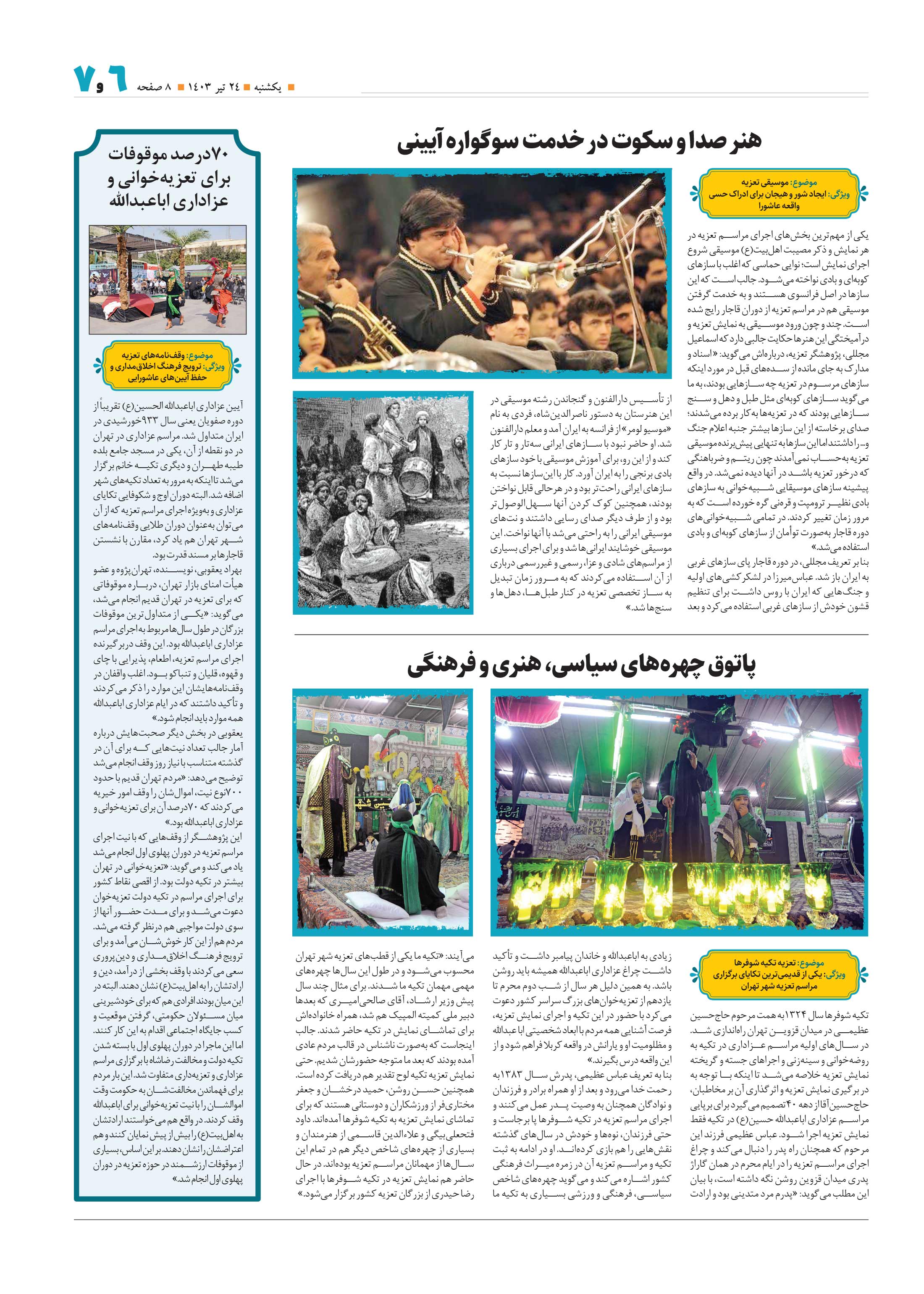 آیین عزاداری اباعبدالله الحسینع تقریباً از دوره صفویان یعنی سال 933خورشیدی در ایران متداول شد. مراسم عزاداری در تهران در دو نقطه از آن، یکی در مسجد جامع بلده طیبه طهران و دیگری تکیه خانم برگزار میشد تا اینکه به مرور به تعداد تکیههای شهر اضافه شد.
