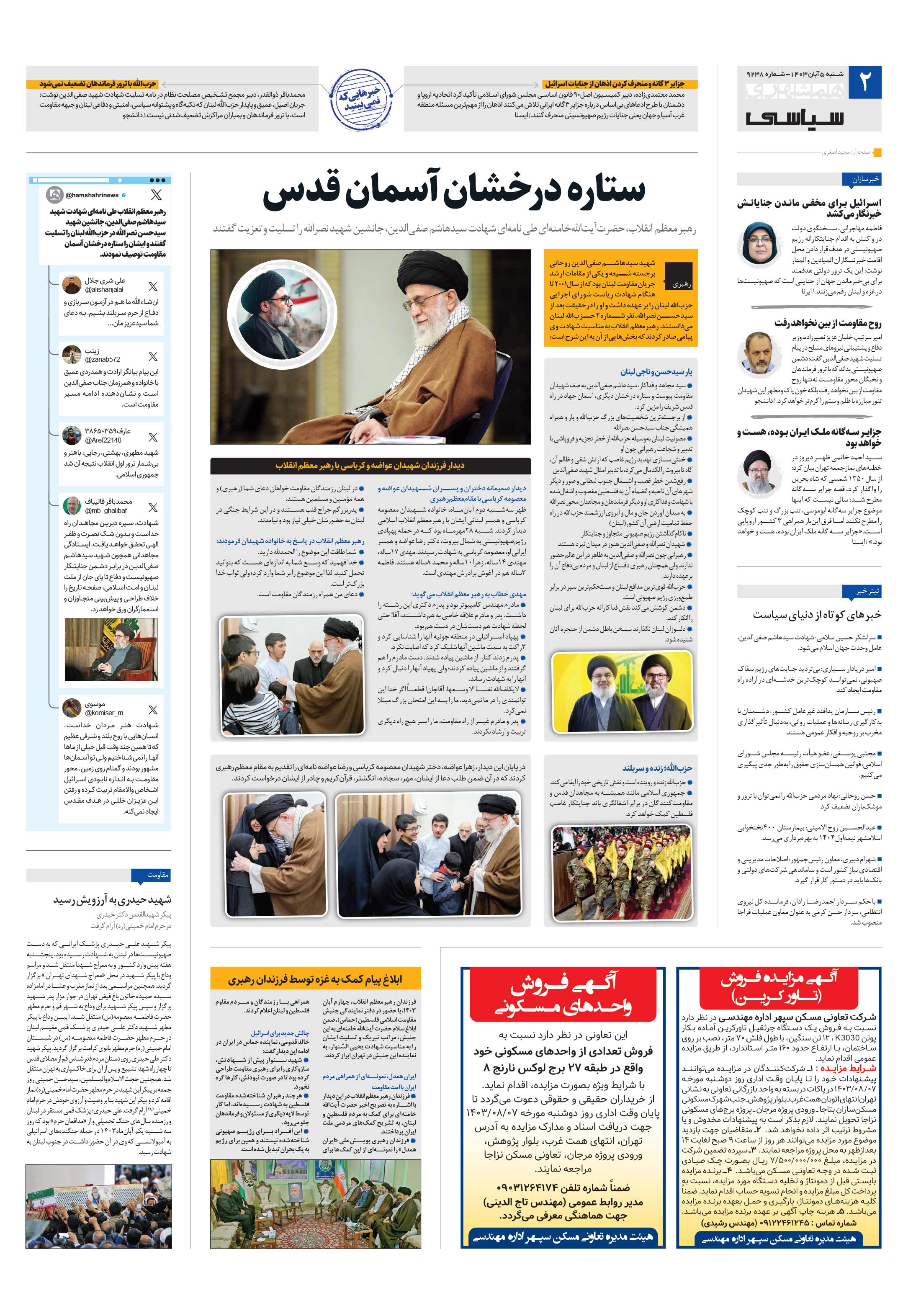 رهبر معظم انقلاب، حضرتآیتاللهخامنهای طی نامهای شهادت سیدهاشم صفیالدین، جانشین شهید نصرالله را تسلیت و تعزیت گفتند
