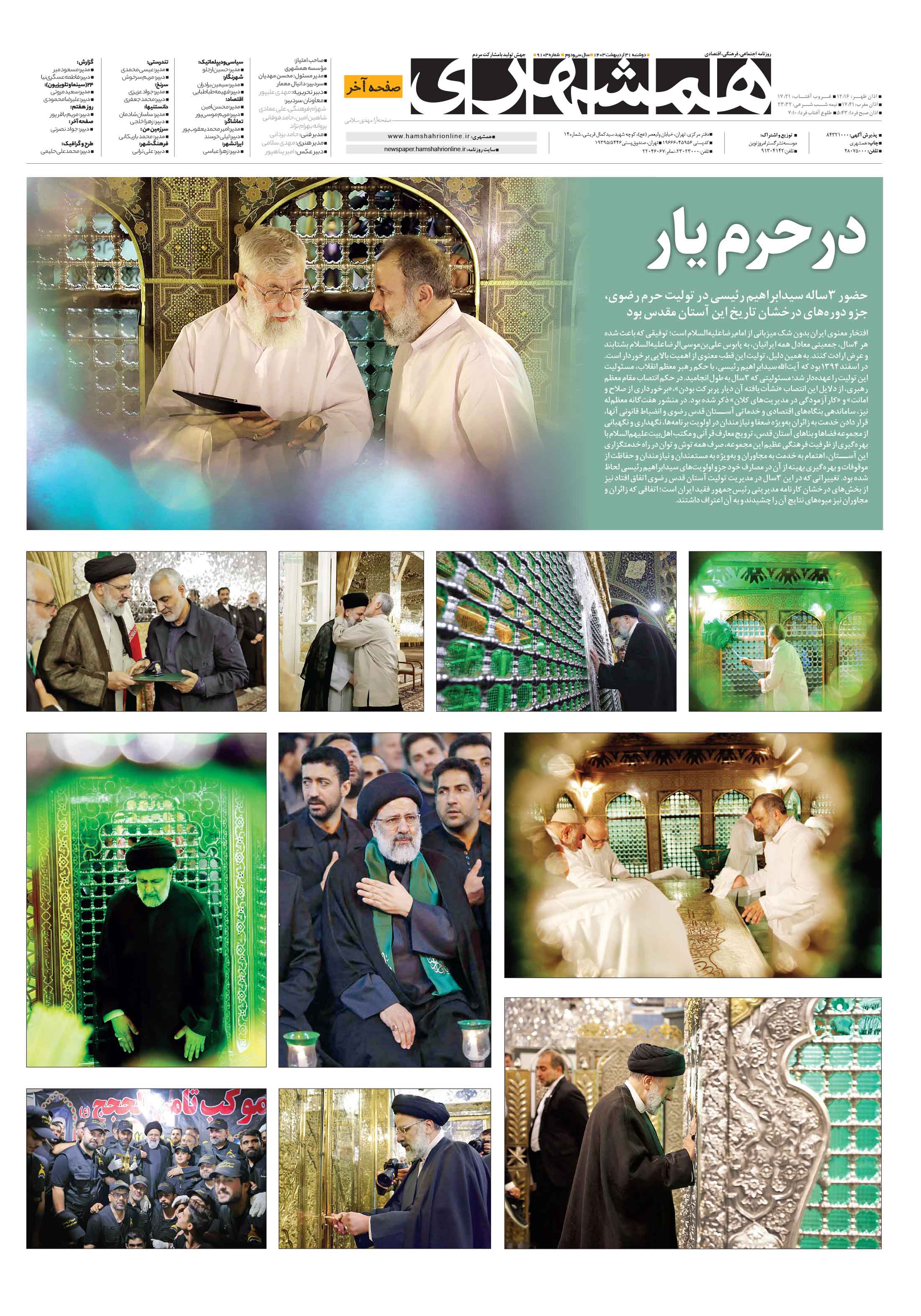 افتخار معنوي ايران بدون شك ميزباني از امامرضاعليهالسلام است؛ توفيقي كه باعث شده هر 4سال، جمعيتي معادل همه ايرانيان، به پابوس عليبنموسيالرضاعليهالسلام بشتابند و عرض ارادت كنند.