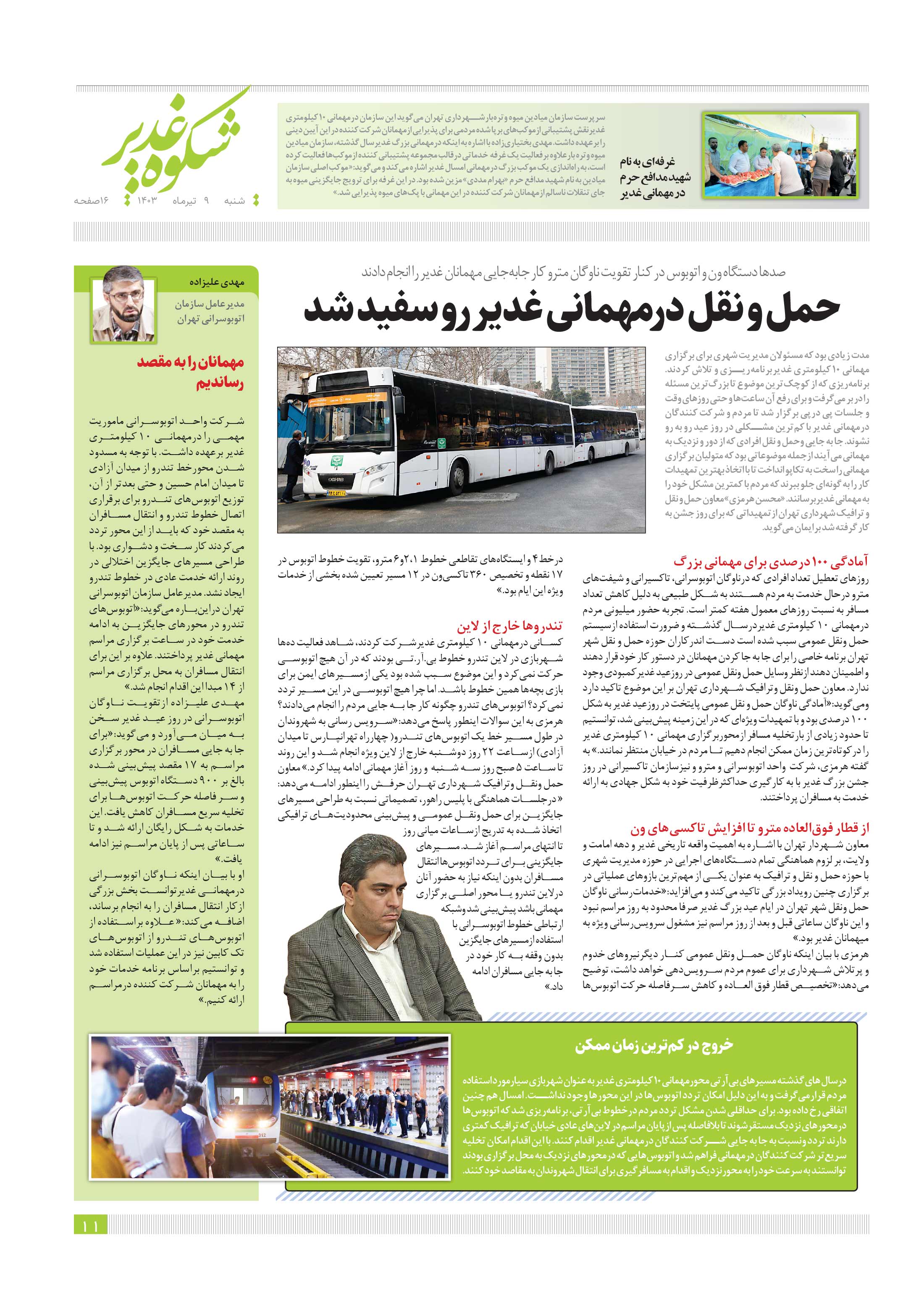 شرکت واحد اتوبوسرانی ماموریت مهمی را درمهمانی ۱۰ کیلومتری غدیر برعهده داشت.