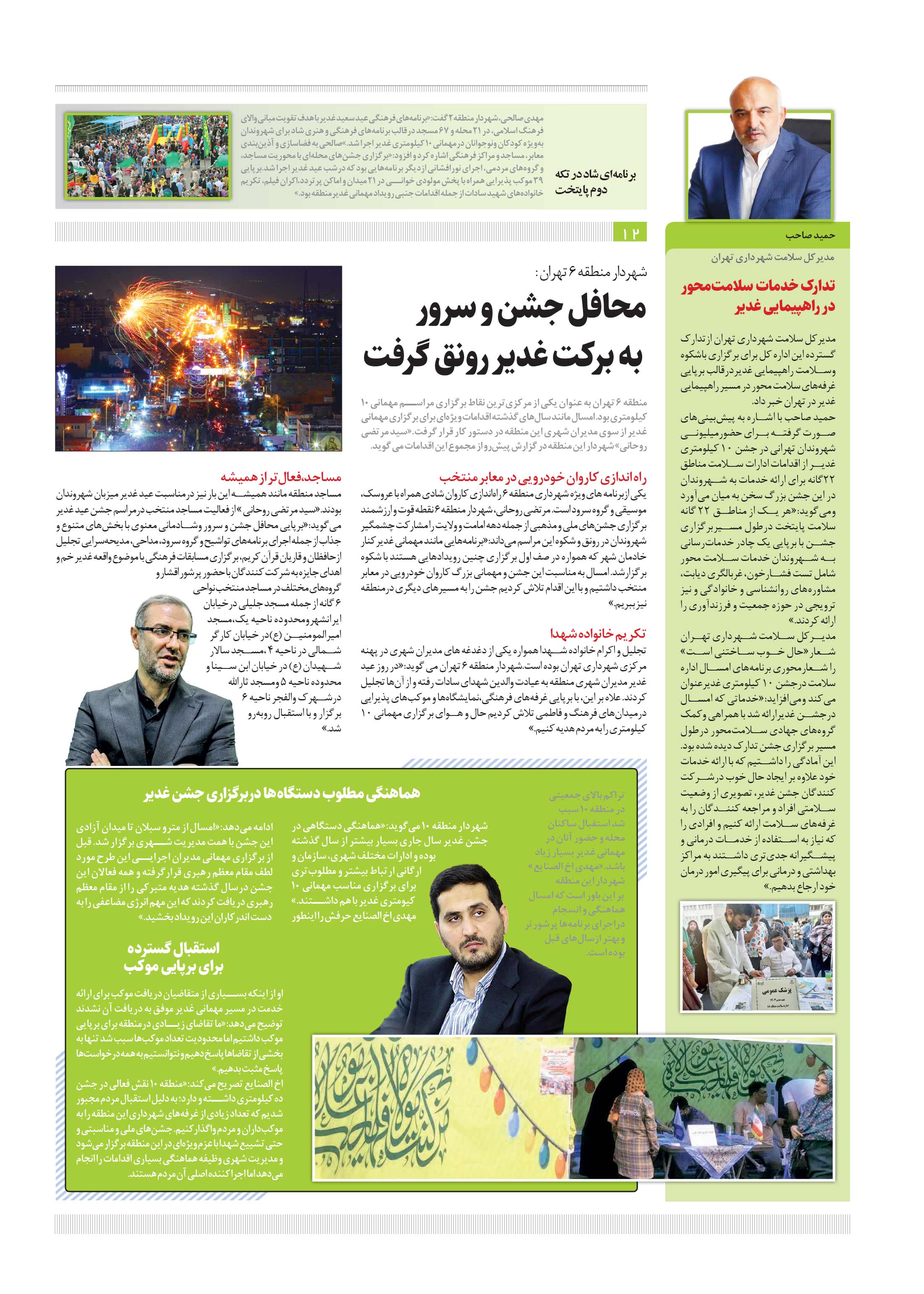 منطقه 6 تهران به عنوان یکی از مرکزیترین نقاط برگزاری مراسم مهمانی 10 کیلومتری بود. امسال مانند سالهای گذشته اقدامات ویژهای برای برگزاری مهمانی غدیر از سوی مدیران شهری این منطقه در دستور کار قرار گرفت.
