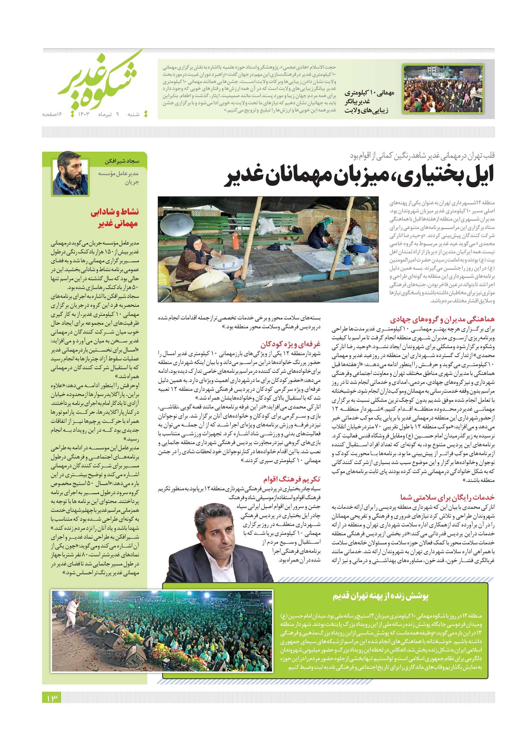 منطقه 12شهرداری تهران به عنوان یکی از پهنههای اصلی مسیر 10 کیلومتری غدیر میزبان شهروندان بود.