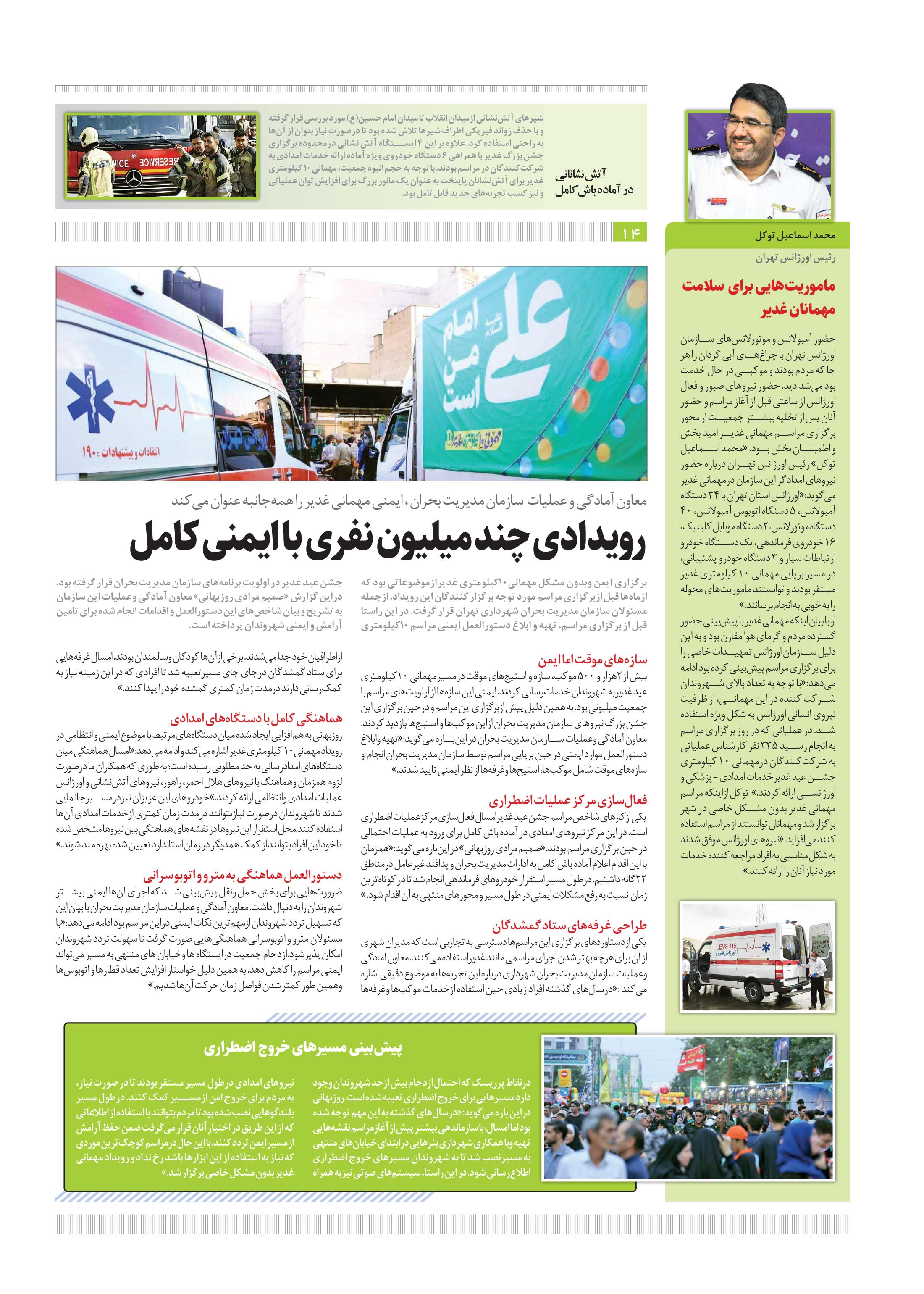 برگزاری ایمن وبدون مشکل مهمانی۱۰کیلومتری غدیرازموضوعاتی بود که ازماهها قبل ازبرگزاری مراسم مورد توجه برگزار کنندگان این رویداد، ازجمله مسئولان سازمان مدیریت بحران شهرداری تهران قرار گرفت.