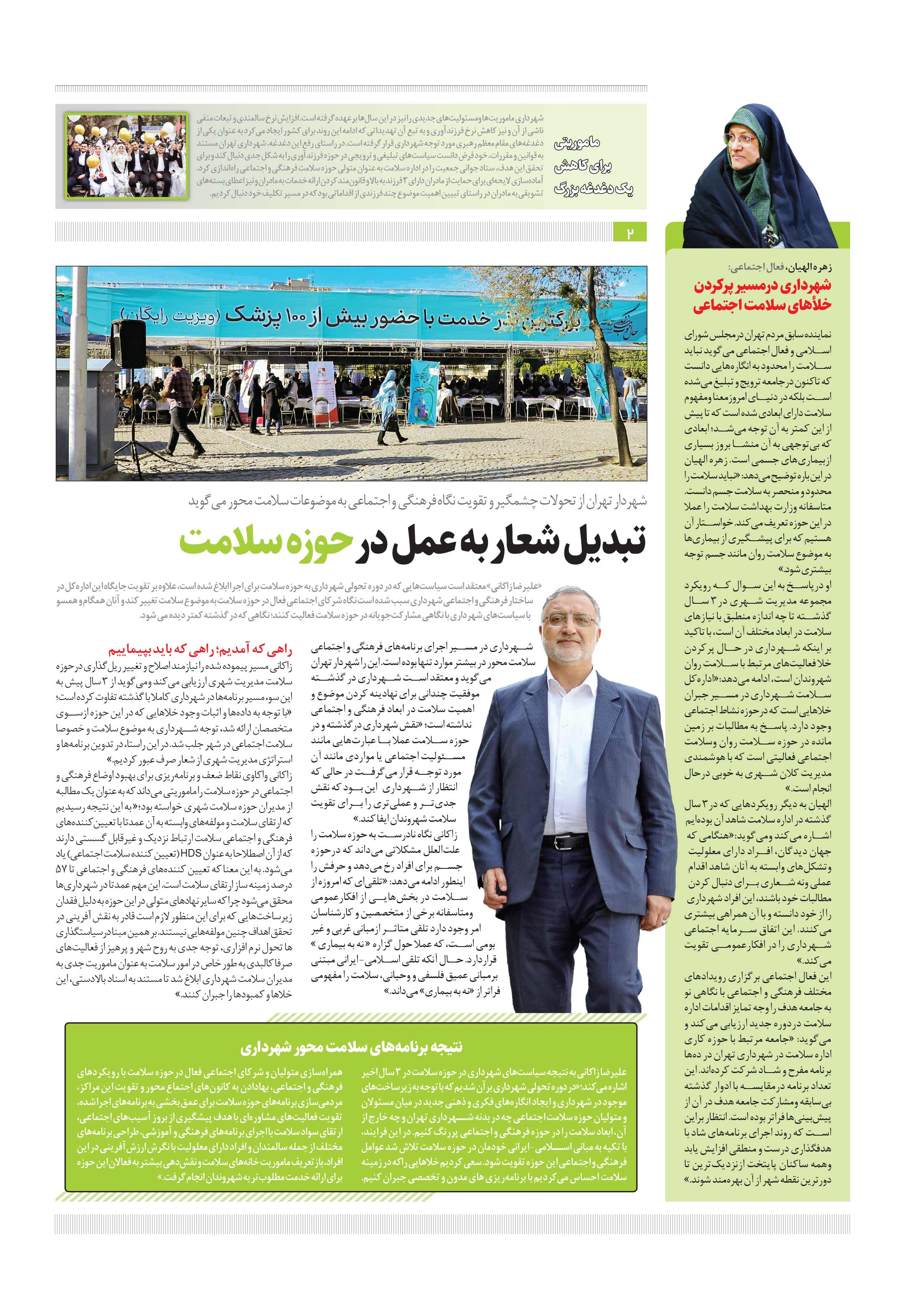 «علیرضا زاکانی» معتقد است سیاستهایی که در دوره تحولی شهرداری به حوزه سلامت برای اجرا ابلاغ شده است، علاوه بر تقویت جایگاه این ادارهکل در ساختار فرهنگی و اجتماعی شهرداری سبب شده است نگاه شرکای اجتماعی فعال در حوزه سلامت به موضوع سلامت تغییر کند و آنان همگام و همسو با سیاستهای شهرداری با نگاهی مشارکتجویانه در حوزه سلامت فعالیت کنند؛ نگاهی که در گذشته کمتر دیده می شود.