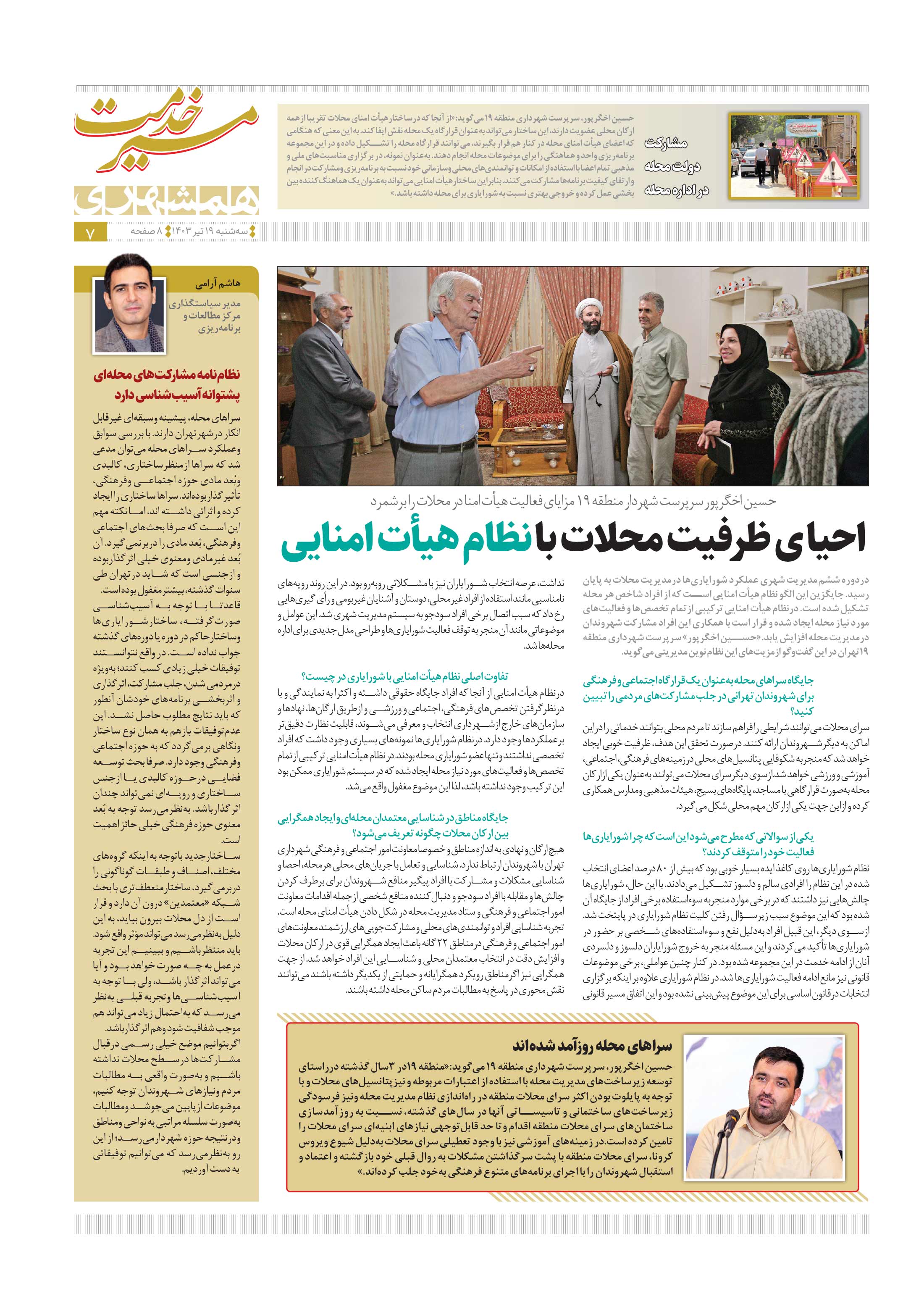 حسین اخگرپور، سرپرست شهرداری منطقه ۱۹ میگوید:«از آنجا که درساختارهیأت امنای محلات تقریبا ازهمه ارکان محلی عضویت دارند، این ساختار میتواند بهعنوان قرارگاه یک محله نقش ایفا کند.