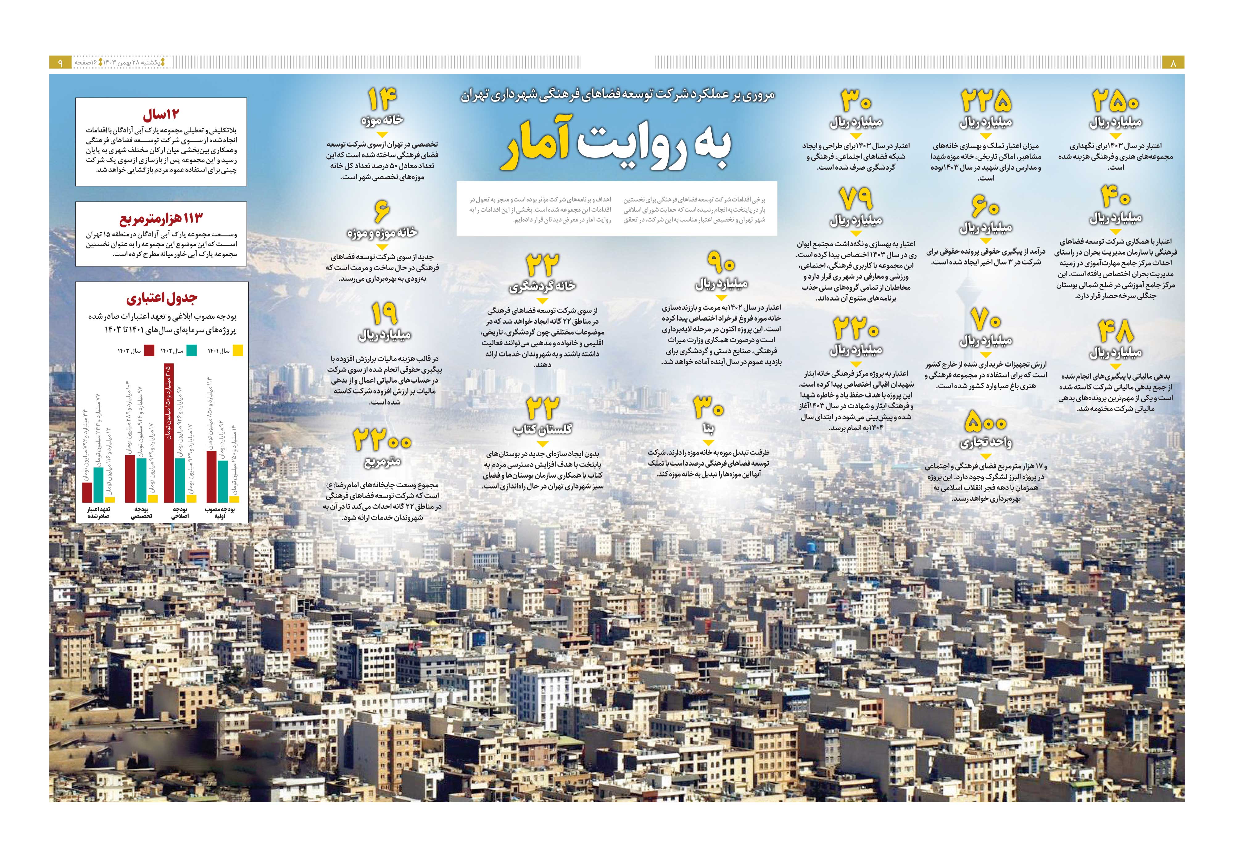 برخی اقدامات شرکت توسعه فضاهای فرهنگی برای نخستین بار در پایتخت به انجام رسیده است که حمایت شورای اسلامی شهر تهران و تخصیص اعتبار مناسب به این شرکت، در تحقق اهداف و برنامههای شرکت مؤثر بوده است