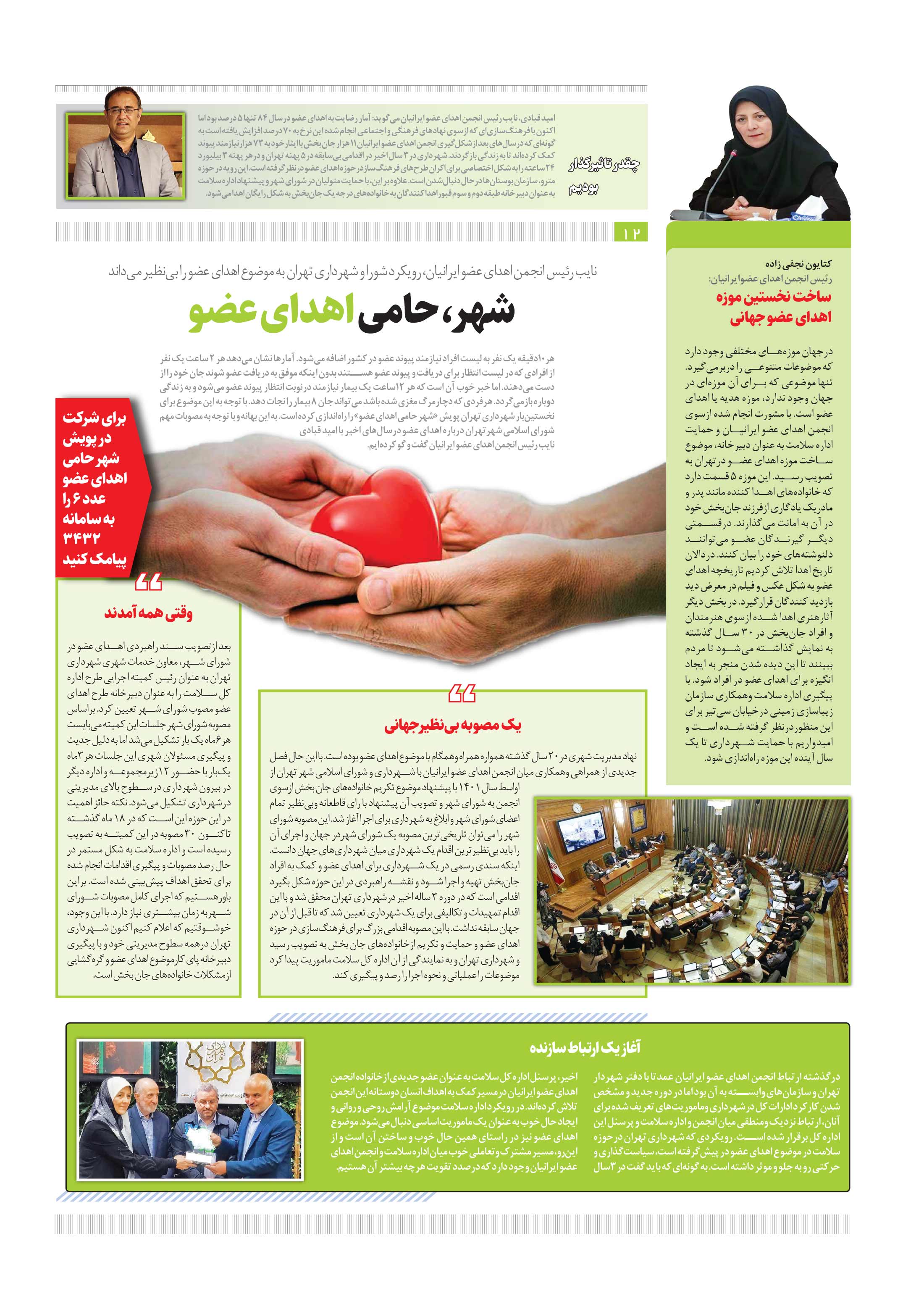درگذشته ارتباط انجمن اهدای عضو ایرانیان عمدتا با دفتر شهردار تهران و سازمانهای وابسته به آن بود اما در دوره جدید و مشخص شدن کارکرد ادارات کل درشهرداری وماموریتهای تعریف شده برای آنان، ارتباط نزدیک ومنطقی میان انجمن و اداره سلامت و پرسنل این اداره کل برقرار شده است.