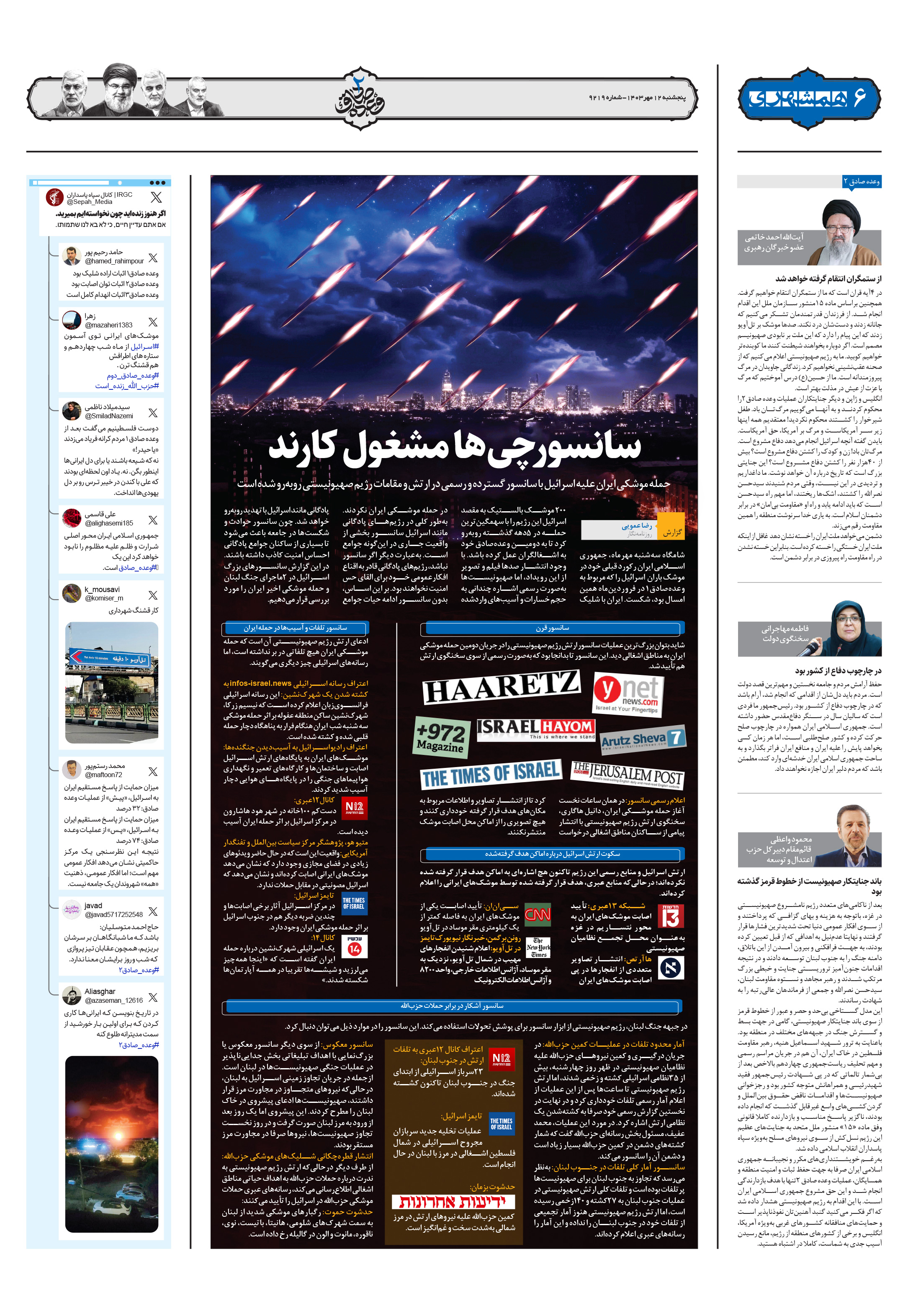 حمله موشکی ایران علیه اسرائیل با سانسور گسترده و رسمی در ارتش و مقامات رژیم صهیونیستی روبهرو شده است
