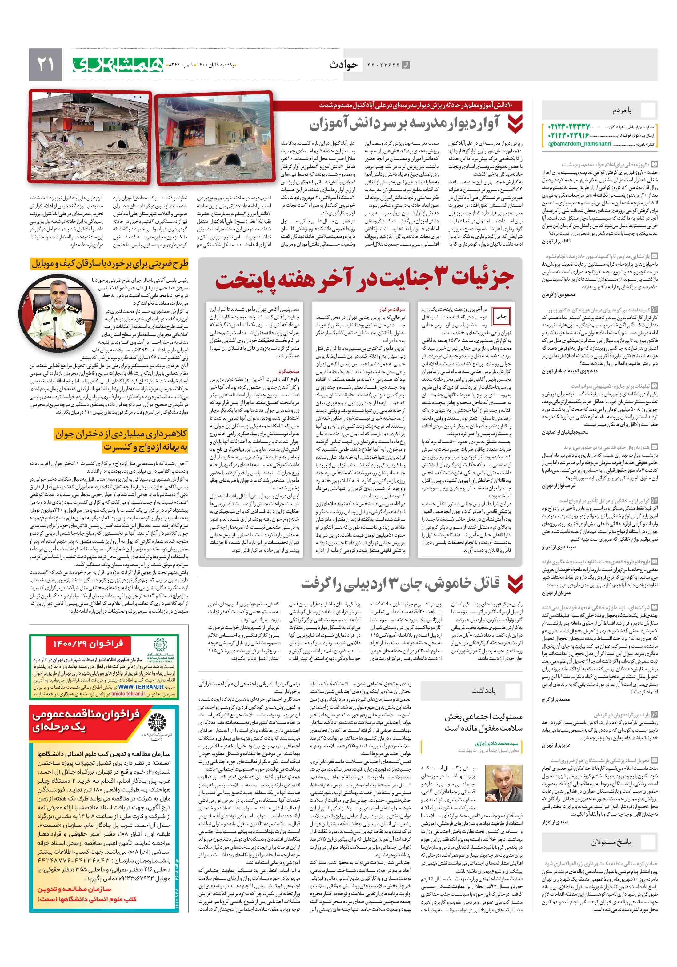 بیش از 3 سال است که وزارت بهداشت در حوزههای اجتماعی متولی ندارد و اقداماتی از جمله افزایش آگاهی، مسئولیتپذیری، توانمندی و مشارکت ساختارمند و فعالانه فرد، خانواده و جامعه در تامین، حفظ و ارتقای سلامت با استفاده از ظرفیت نهادها و سازمانهای فرهنگی، آموزشی و رسانهای کشور تحت نظارت بخش اجتماعی وزارت بهداشت، دچار خلأ شده است