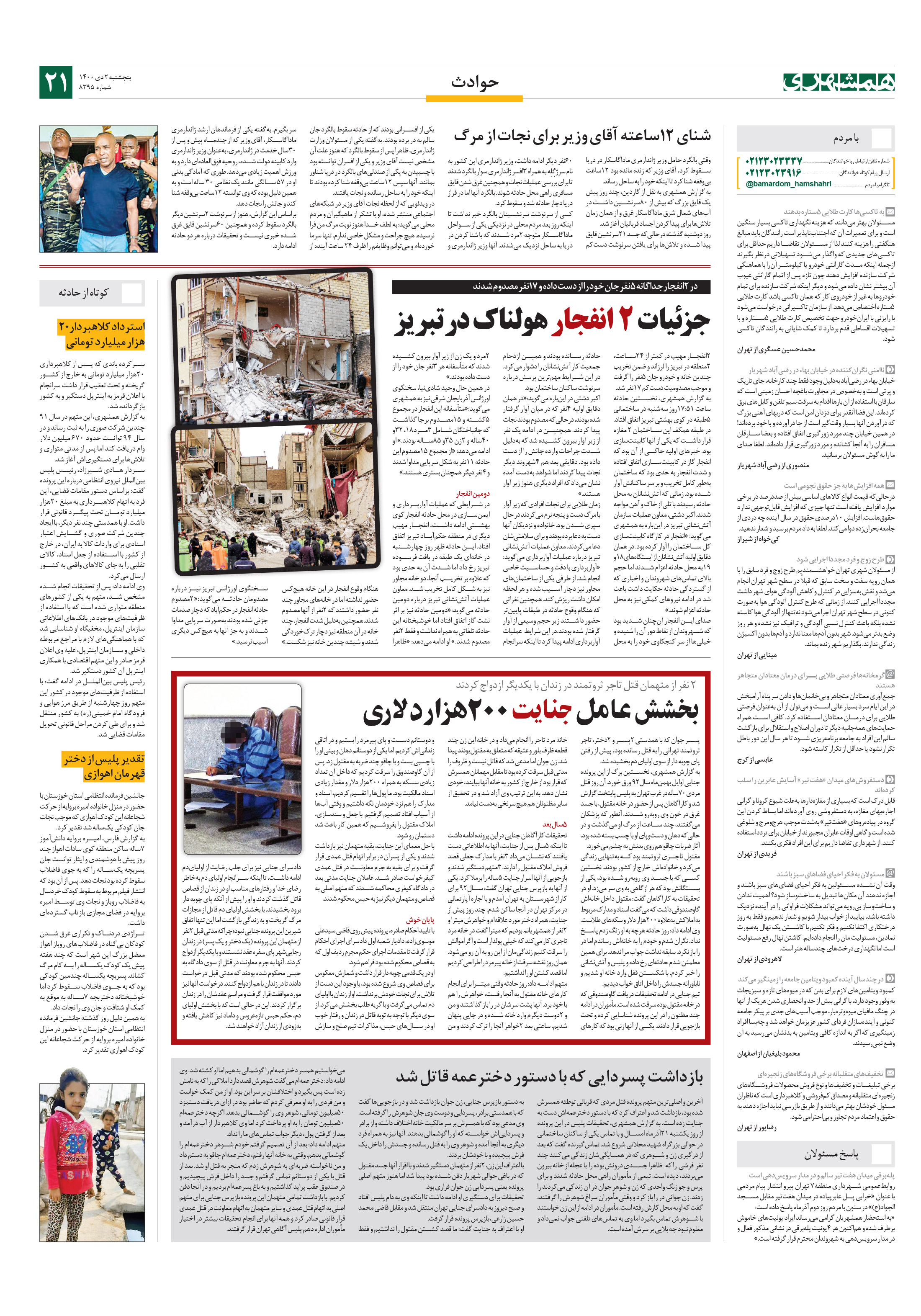 وقتی بالگرد حامل وزیر ژاندارمری ماداگاسکار در دریا سقوط کرد، آقای وزیر که زنده مانده بود 12ساعت بیوقفه شنا کرد تا اینکه خود را به ساحل رساند.به گزارش همشهری به نقل از گاردین، چند روز پیش یک قایق بزرگ که بیش از 80سرنشین داشت در آبهای شمال شرق ماداگاسکار غرق و از همان زمان تلاشها برای پیدا کردن اجساد قربانیان آغاز شد.