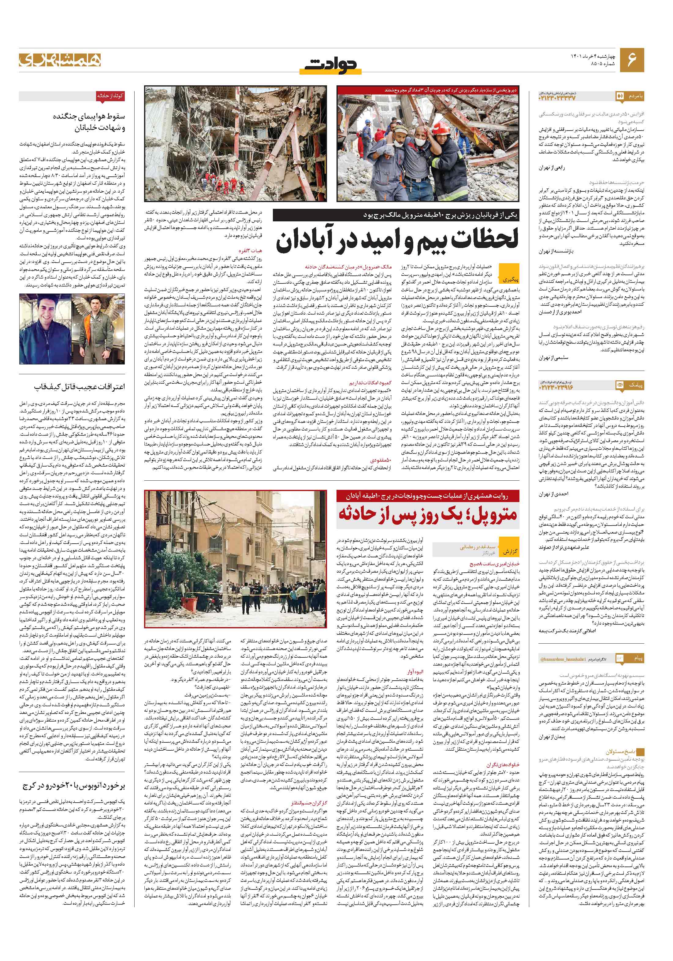 با اینکه مأموران نیروی انتظامی از طریق بلندگو مدام هشدار میدادند و از مردم میخواستند که به خیابان امیری، جایی که برج متروپل ریزش کرده نزدیک نشوند اما تقریبا همه فرعیهای منتهی به این خیابان مملو از جمعیتی است که برای تماشای حادثه و عملیات امدادرسانی به آنجا هجوم آوردهاند.
