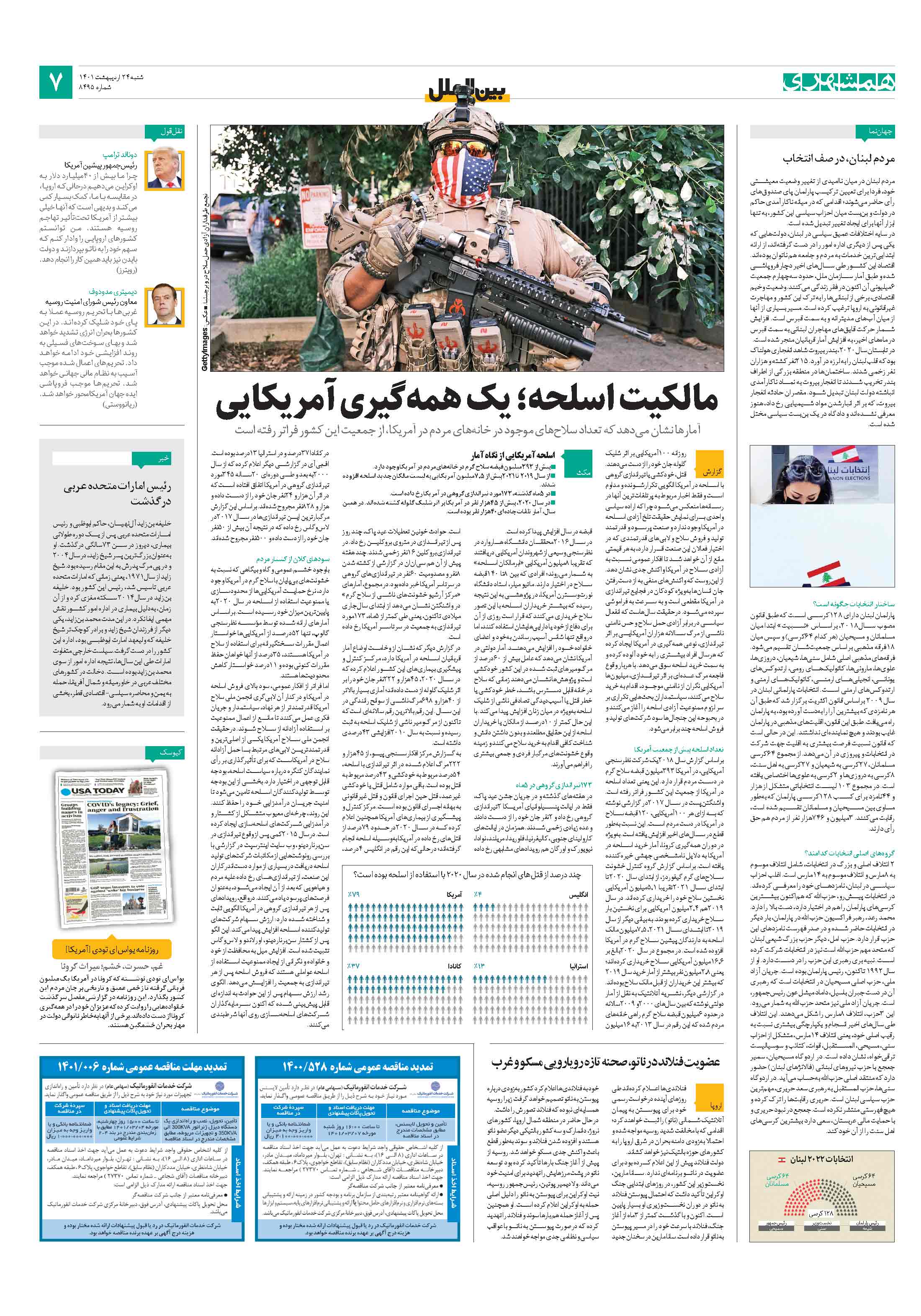 آمارها نشان میدهد که تعداد سلاحهای موجود در خانههای مردم در آمریکا، از جمعیت این کشور فراتر رفته است