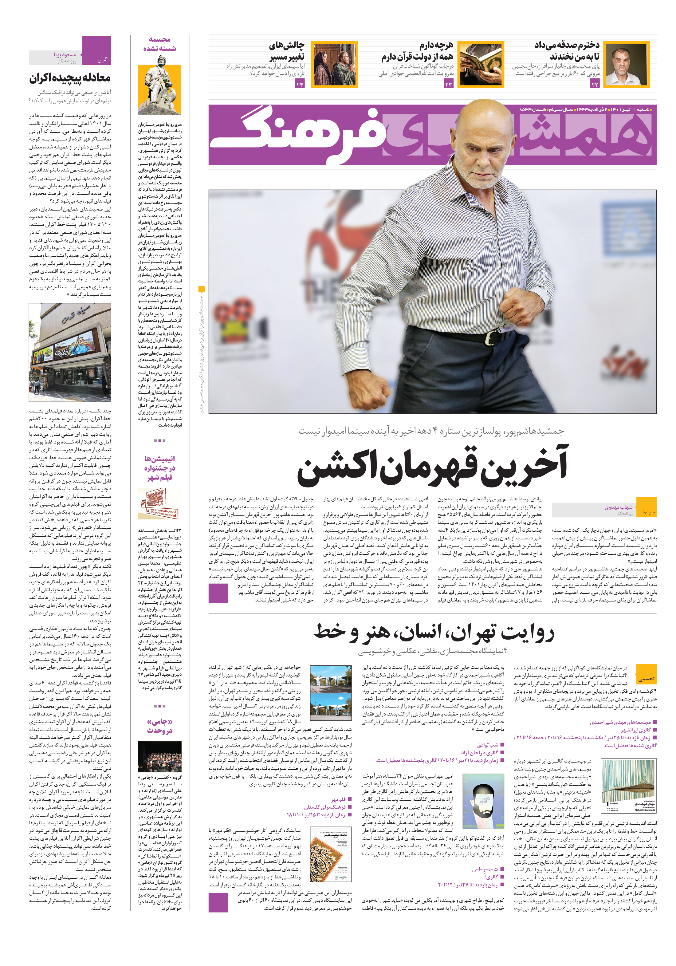 «امروز سینمای ایران و جهان دچار یک رکود شده است؛ به همین دلیل حضور تماشاگران بیش از پیش اهمیت دارد و ارزشمند است. امیدوارم سینمای ایران دوباره زنده و کارهای بهتری ساخته شود؛ هرچند من خیلی امیدوار نیستم.» اینها صحبتهای جمشید هاشمپور در مراسم افتتاحیه فیلم «روز ششم» است که بهتازگی نمایش عمومیاش آغاز شده است...