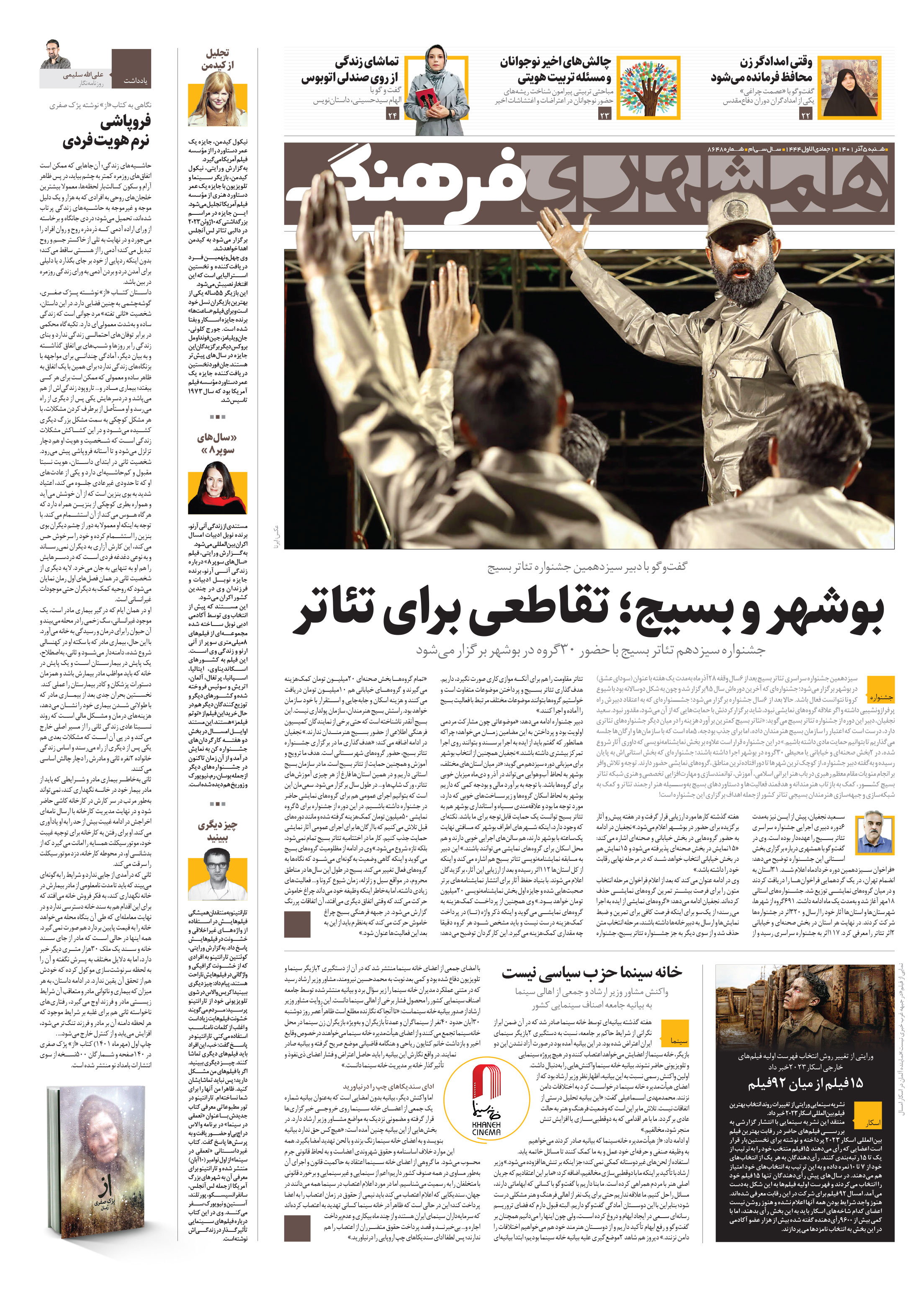 جشنواره سیزدهم تئاتر بسیج با حضور 30گروه در بوشهر برگزار میشود