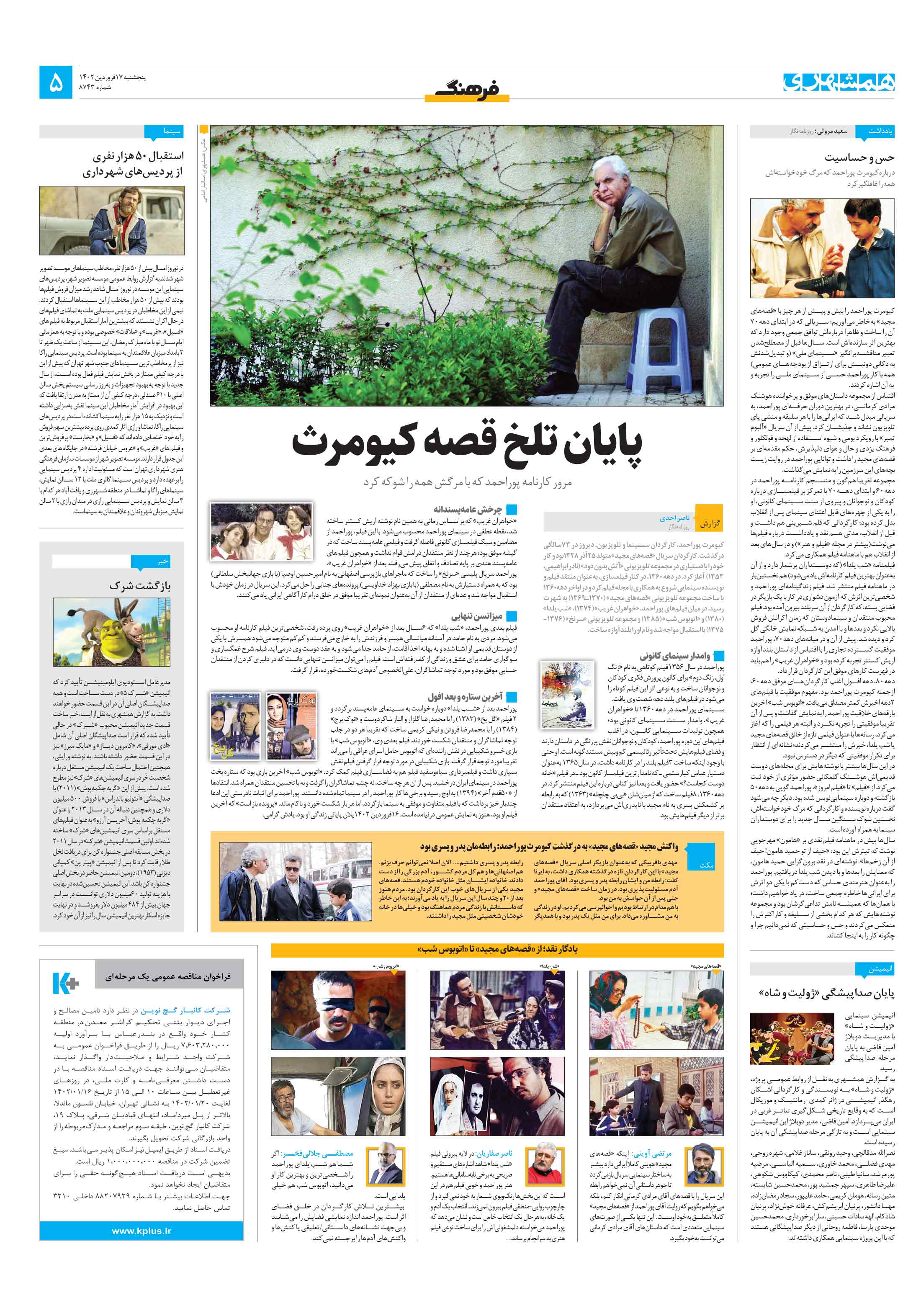 کیومرث پوراحمد، کارگردان سینما و تلویزیون، دیروز در 73سالگی درگذشت. کارگردان سریال «قصههای مجید» متولد 25آذر 1328بود و کار خود را با دستیاری در مجموعه تلویزیونی «آتش بدون دود» -نادر ابراهیمی، 1353- آغاز کرد.