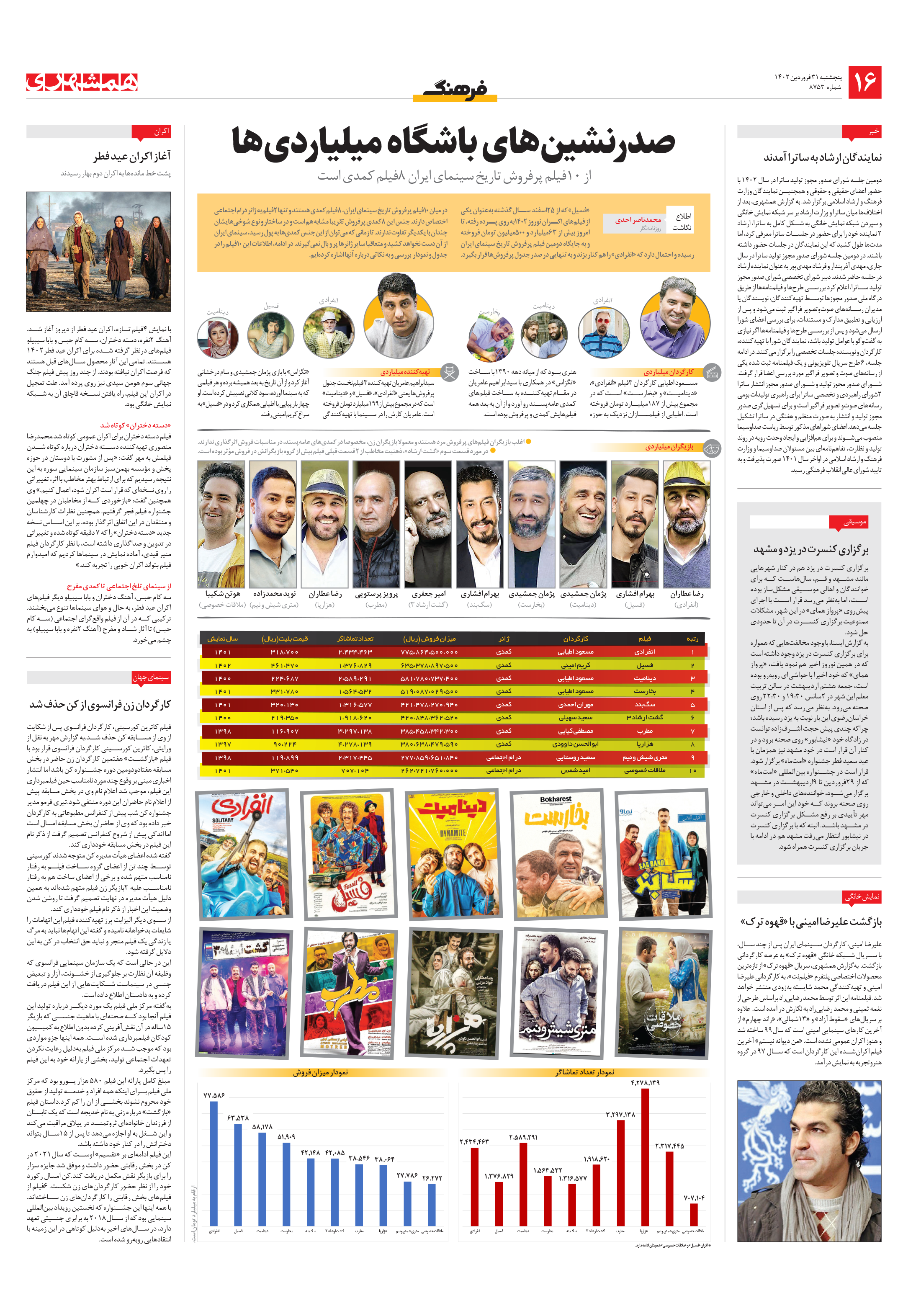 از 10فیلم پرفروش تاریخ سینمای ایران 8فیلم کمدی است