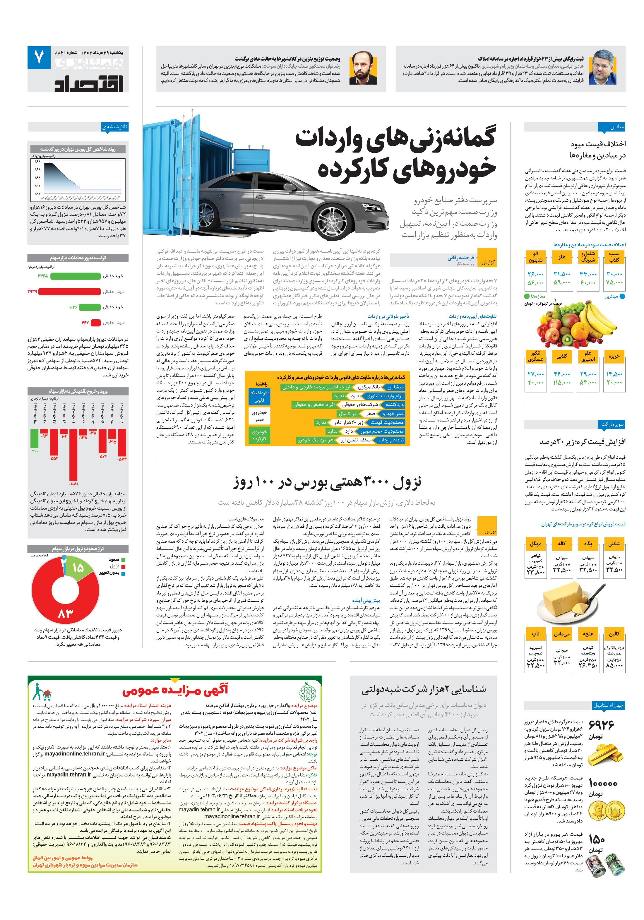 نزول 3000همتی بورس در 100روز
